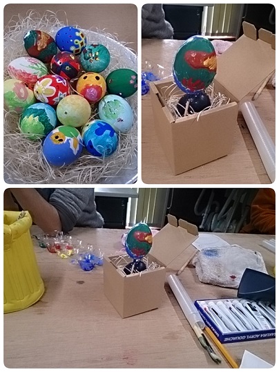 屋外で野鳥観察 その後ランチタイムは持参したお弁当に舌鼓午後は屋内施設で卵の殻に絵付けします中身取り出した卵の殻絵具で好きな図柄描きました たとえ乙女とはいえ空っぽの殻描くことに夢中になったりなんかしたらグニューと握りつぶすとも限らん恐ろしさ心配無用でした上下に空いた穴に竹串突き刺し 手を触れることなく作業する手順学校出てから 数年久しぶりに持つ絵筆に震えたもののまず下絵書いて あとは上塗りで・・・・・・こんなん出来ました当日の参加者 ちびっこ入れて14名完成したアート作品並べて 品評会さて うちら夫婦どちらがどちらの作品でしょうか? 最後は 今日見た鳥の名前のおさらい講師もリラックス おどけたりして笑顔満開 閉講式に・・・・スタッフに見送られて三時半には今回のイベント 以前お隣に住んでて引っ越すまで ずっとお世話になったMさんが偶然 参加者の中に居てびっくりずっと 行動共にしてまた ご飯でも食べにおいでって誘って解散たったワンコインで一日遊ばせてもらって貴重な制作体験できるシマはやはりパラダイスです そうそう今日は 暖かくなって 汗ばむ気温でしたこれもやはり ぱらだいす?
