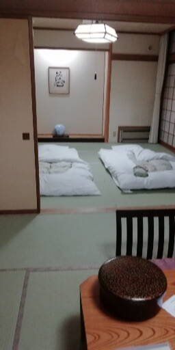 旅行記続けますツアー3日目のお宿こちらも料金ランクUPチームとの差は激しくて・・・・うちらの部屋は 例によっての旧館お風呂行くまでに何度もエレベーターに乗っても 温泉には行けん仕組みみんなで助け合い消えゆく記憶 つなげて紡いで温泉にたどり着いたはエエけど 部屋まで帰るのも一苦労そして 温泉でメッチャ驚く事件?に遭遇そちらの温泉 露天風呂は館内すぐ横に設置してるもののなんせ暗くなってるから 足元不安恐る恐る足から湯船に・・・・一段かと思ったら差に非ず なんとぉ二段もあっておもわず転びそうに続けて入ってきたのは 前夜一緒にテーブル囲んだ奥方カノジョも同じ怖さ 体験する姿目撃次に来たのが往年の大女優 ならおか朋子さん似のボーイッシュな老女根がでしゃばりつい大声でアドバイス「おくさあ~あん そこ 二段もあるから気を付けて」返った言葉 なんだったでしょぅこれは明日までのクイズですそうそう彩雲のラッキー すぐさま表れて仰天渡されたキー 部屋は一番奥の隅部屋別段変わった風もなかったけど浴衣探すため襖開けたら 二間続きずっと 食事に行ってる間に敷かれてた布団今夜はすでに敷いてます 温泉で一緒になったマミちゃんにソッと云ったらなんと彼女らは向かいの部屋で部屋間取り図 通路まで見に行ったらうちらの2室が二間続きだったとゆうこと2人で「皆には云えんなぁ 内緒にしときましょ」 夕食の会場は これまた迷子になりそうな迷路その夜はバーコードツアコンからの指示なかったのでline交換した若者たちと同席えへへっ実は 八十過ぎ爺カップルが前に居たので敢えて順番ずらして 彼らとアイコンタクト取り 同席した次第けど隣りの宴会場 某会社の慰安旅行らしく大音響 下手なカラオケ聞かされて・・・早々に部屋に戻ってまた温泉行翌朝も温泉行朝食後 少し遅めで 寒いと怯えて大型スーツケースの中にはうるとらダウンコートからultraダウンベスト旅行4日目に入るまで着る機会なかったのは幸いかな?よって 綺麗な紅葉はここにきてやっと本格的な景色に・・・ まさやん夫婦で行った証拠写真此処のロケーションがステキと一眼レフ抱えて いっぱしのプロカメラマン気取りのお爺さんに依頼ところが 期待裏切り折角のロケーション ばっさり切り捨て景色一切無し うちら夫婦のドアップ記念写真その後 車窓で紅葉楽しんで・・・・ 今回 一番楽しみにしてたあさひやま動物園に 其の時 ハッと気づいたことひとつ顔面蒼白になるまで五分掛からず・・・・ではこれも明日までの問題にしましょう