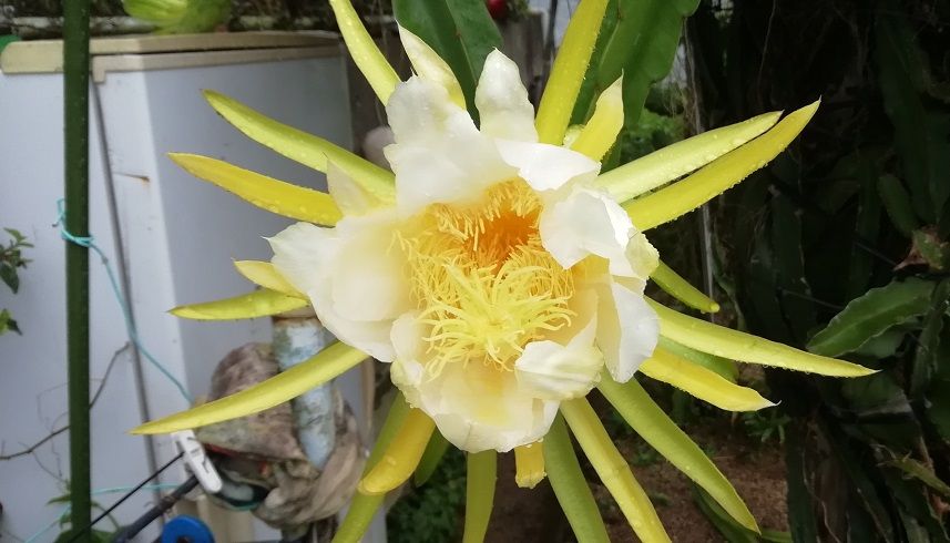 旅から戻って明日で一週間帰るの待ち構えてたのようにドラゴン様 連日の開花今年のお約束 花が咲く時 必ず降雨今夜も数個咲いてるモノの・・・・天気の保証はござんせん!! 旅日記 続けますしんちとせ空港着いた時は まだ辛うじて明るかったけどなんせ日本の東あっとゆう間に真っ暗け着いたホテル周りになんもない田舎ん中けど 料理と温泉は善かったと・・・ウェルカムぜんざいににっこり夕食まで時間無かったけど取り敢えず温泉で汗だけでも・・・・その前に頂いた お楽しみチケット握りしめ売店へなんと 玉ねぎ詰め放題プレゼント権利放棄しようとしたらテツパチーノ「うちのん もうじき腐るから貰っとこっ」売り場スタッフ カツラつけたなんぼ割り引いても80歳前後のおばぁちゃん「そうだよ 沢山 持ってお帰りっ」上手に二重袋にするようアドバイス 悪いから とかち産小豆買いました えへへっ 三杯千円なれどおばぁちゃんに甘えて 「マケテぇ 誰にも言わんからぁ」気の善いばぁちゃん 四杯入れてくれましたぁ「今から 温泉かい? ここのお湯は効能善くて お肌すべすべで 綺麗になるよっ」「そしたら ワタシ 綺麗になって帰りには此処を通ってもダレか判らんよぅになるんやねっ」「♪そだねぇぇぇぇっ」ふるびた温泉なれど 湯質は最高温泉来たら まずは露天風呂湯船に顔つけ じゃぶじゃぶ これで別嬪一丁あがり!!意気揚々と浴衣に着替え 売店前通ったら・・・・・ばぁちゃん売り子 「お帰りっ」 なんでやねん!!ナニワでは ボケてどちらはんでしたかなぁが基本やでぇ!!