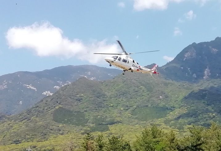 ゴルフ練習に来たもののドクターヘリ着陸予定だと云われ 設置してたポール全て撤去御仲間全員 じっと事態見守ってました 広いグランドに やっとヘリ着陸 診療所からも せんせ 看護師スタッフ駈けつけて すぐさま 飛び立つと思ってたらそっからの時間の長いコト救急車から 患者さん降ろす素振り一切ないまま時間経過ゴルフ仲間さん 口々に「ダメだったのかのぅ」「このまま 帰ってしまうんかいのぉ」「空車で帰るのも なんやしぃ~ なんなら 乗せて欲しい~」喉まで出た台詞 辛うじての常識が制止しましたぁ やっと 患者さん ヘリにトレード 前方確認してる男性居て~ 合図送るだけかと見てたら なんのこっちゃ 確認終えたら乗りこんで・・・あっとゆう間に飛び立って 患者さん 無事回復されふつーに帰島されること祈って 皆で空見上げてましたこの模様 シマ友達にlineで送信したらびっくりの事実患者さん ダレって質問あってゴルフ仲間さんに聞くと 名前と住まいまで判明すぐさま LINEで氏名送信したら 懇意にしてる友人ってこと判明して・・・・カノジョがそのあと 家族に連絡とったら現在 集中治療室で治療中なれど 明るい方向にむかってるとのこと運が善かったら 命落すこともないやろけど離島の田舎暮らし 病院問題で 都会にUターンされる方 多くなってるのも現実です