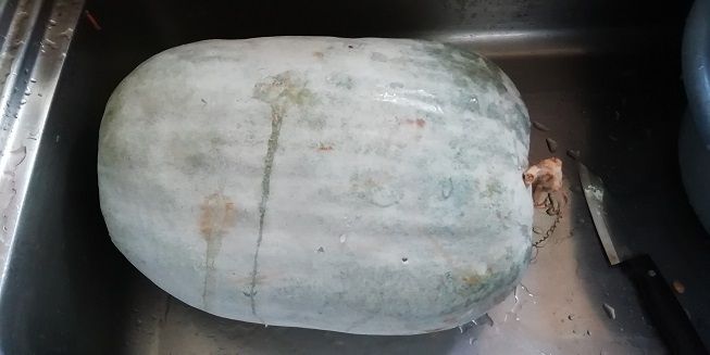 ナニワ住んでた頃冬瓜は名の通り 冬越す野菜と思ってたけど・・・ 暖かいシマ冬越しなんてとんでもないどないかしたら年末に自然爆発したり尻部分から腐ったりしてて早めに消費するのが鉄則でした今年に限り 寒い日が続いたのと巨大冬瓜 我が家だけでは食べきれずあちこち声掛けして嫁入り先きめるのがなんやかや日々多忙切るタイミング逃して 今に至った経緯あり外から見たら腐ってる風もなく 勇気出して解体決意その前にあちこちに声掛け今の時期の冬瓜 やはり珍しいのか嫁入り先 即決定 我が家に遊びに来る約束してた若いお仲間の日時に合わせて 解体ショー 七軒におすそ分けして 残った分で うちで久しぶりに冬瓜鍋作ったら三日続けてのおかずになりましたわが家に遊びに来た若いお友達御土産は自分で焼いたお菓子 マフィン 海見ながら リビングで 久し振りに若者たちとのお喋り普段 年上の方たちとの交流が主だからリフレッシュできた気がしてますが・・・