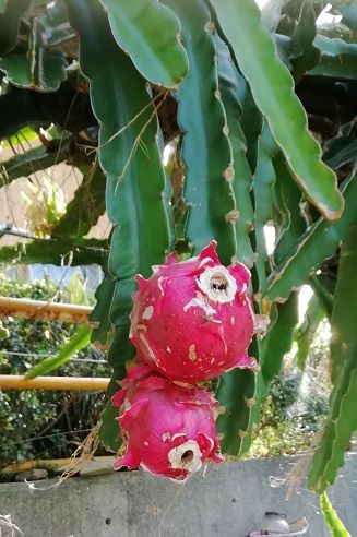 初物 ドラゴン様 豪華朝食テザートにして続けて あと四個 ぶら下がってます あと 三日もしたら次の受粉作業が始まるかと台風進路次第で 受粉できず落下するやも あちこちの友人から心配するあったけど二日前のうみそば温泉は穏やかでした 今月前半はG・の御当番さん 女子三名は新築されたばかりの公衆の掃除担当男子四名 もっぱら練習場の整備と諸々の準備作業 トイレ掃除 週三回ワタシとおない歳のOさんと 御年85前後?のYさん 三人で・・・持ち場の割り当てはわたしYさんは御歳だから 楽な?障害者用トイレの拭き掃除指示各自の作業に精出してたら 突然 おおきな警鐘音鳴り響き突然のことに驚きすぎて 三人揃ってあたふた深呼吸して 落ちつくようにしたけど・・・こんな時 役にたったのはやはりOさん入口に回って 表の標示板しみじみ眺め黄色いランプの下のボタン押しましたするとぉ けたたましく鳴ってた警鐘音 ピタッと停止改めて 三人大笑い事件の顛末?聞くと便器周りのボタンがつい気になり 何気に「ポチッ」其れからの大きな音に慌てふためいたそうですその話 昨日ゴルフ仲間さんに話すとカノジョも同じ経験したそうな最新設備のセンサーで室内の電気点灯等 いろんな機能付帯が仇になってるのかとけどねぇ肝心の換気扇 網戸ないのはなんでやろ?掃除するとき あまりの暑さに 熱中症発症しそう