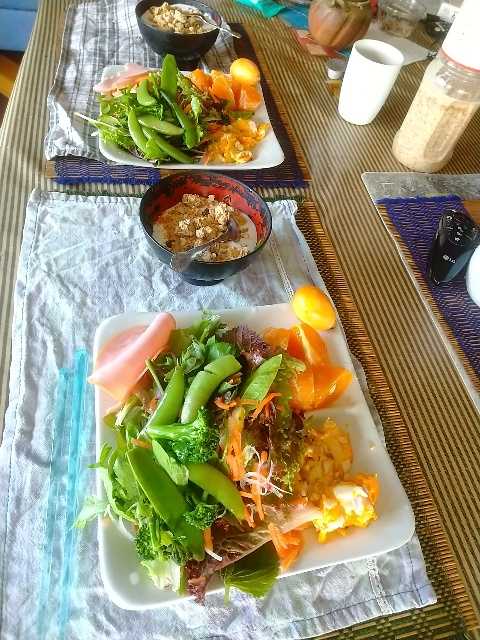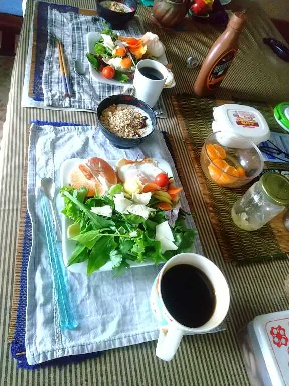 転倒して四日目の昨日痛みは ほぼほぼ消えてて一安心朝の散歩は テツパチーノにお任せしたまんままぁ 骨折でもしてたら即入院 家事一切 おっちゃん一人で賄うことになるからそれくらいはしてもらっても安静中に 来週来島決定した 可愛いまご二人の為の チケット調達りぃちゃんの大学も決まり さぁりぃ揃っての来島は8年ぶり?川遊び所望ゆえ ガイドさんにお願いしたりしてあとは 今までの経験にモノ言わせ たっぷり シマ遊び満喫させるつ・も・り転倒の方は 光みえてきたけど先日から気がかりひとつ去年六月 足にウィルス菌侵入そのつもりの受診でないのに 突然の入院指示晴天の霹靂そのもの悪夢の?入院ライフ いえいえ 看護師さん 清掃スタッフさんと 日々の生活楽しめたけど・・・数日前から 同じ足指に違和感感じたものの 気のせいかと自分誤魔化してしかしさぁりぃの来島決めた日から 急に不安むくむく主治医の女医さん 予約の取れない人気ドクター突然の思い付きで受診しても 診察してもらえるか否かは不明このまま この不安持ちつつ 孫の来る日迎える恐怖心に耐えられずつい・・・・・まず に受付に電話「予約してないんですが~ 何時間でも待つから 今から行ってもいいですか~?」結局 直接の受付に電話転送すっかり 顔なじみになってる受付嬢に□々鹿々・・・カノジョ 以前は 怖い顔で淡々と仕事こなしててなんか苦手だったけど何度も通ううち 入院中 毎朝診察してもろてるうちになぜか 受付嬢カノジョも診察室に入り一緒に ワタシの話に聞き入り ダンボ笑顔で 会話にも入るようにそのせいか 「10時に予約いれました 今から来てください」まぁ 想定外の快諾で嬉しくなって いつも以上に なんでか予定より15分も早く到着時間通りに診察受けて 転んだ時 その後の経緯喋ってたら看護師さんも時々 クチ挟むから女医さん「なんで アナタが 知ってるのぉ?」「だからぁ~ 転んだ日に この人に逢ったんですよぉ もう診察時間終わったって言われたしぃ」看護師さん 「あなた あの時 さっさと歩いて帰ったもん」そのまま また レントゲン撮影に 横向き 仰向き 斜め向き いろんな体位させられて今更ながら モデルにならなくて良かったと確信診察の結果は事故日に見てもらった先生の診たてと一緒歳なりに あちこち傷んでるようです来週 エコー検査の予約とりましたとりあえず さぁりぃ来るのには支障なしついでに 持病の内科診察も受けました初めてのせんせ触診するのは忘れたみたい うぁーおぉ~若いコでないから 敢えてそうしたのかもけど いろんな話で盛り上がり結論は「奥さん 元気だから まだ まだ 大丈夫 30年は保証しますわ」ワタシ「せんせ ワタシ ビジン薄命やから そないに生きられませんわ」なんでか 大笑いしはって「そんなこと 云える人は 大丈夫 長生きできますよ」これって 褒められてんやろかぁ今日の朝ご飯です