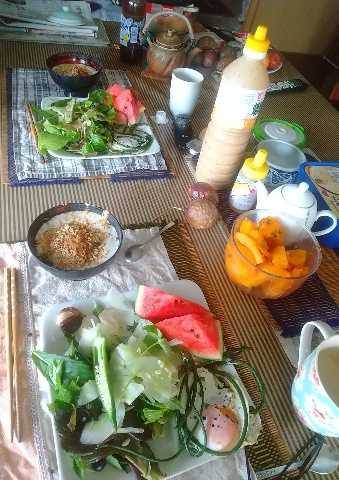 夏本番スイカが美味しい季節になりまして昨日 くまちゃんママ 我が家まで🍉持参してくれまして~今回 オーダーしてたから一つは定価で購入少し小振りなの 一個おまけヘチマも二本サービス (この地では ヘチマは暑さ減少させる食べ物として人気)鶏肉ぶつ切りの中にスライスしたヘチマ投入中華風の味付けして食しますうちはお返しに十角ヘチマ生で食べるヘチマ珍しいとリクエストされてました大きすぎて残してたかぼちゃ半分付けて~朝から冷やしておいた🍉食べたら メチャ甘っ今日 やっと届いた洗面台 取付作業で汗びっしょりになってる歳の差のあるトモダチおっちゃんにも出したら大喜び作業は 二時間弱 ワタシ ヒマだからずっと作業監視動く手 何度も止めて・・・手より👄の動きがはげしかったかも~不便な暮らしからやっと解放 今日から鏡の前での洗面おっちゃんに言いました「毎朝 鏡の中のべっぴんさんの顔みて 一日スタートするのが ルーティン洗面台無いから ずっと調子悪かったわぁ」「はいはい」自信もって 云い切るのがワタシの生き方ですが なにか?