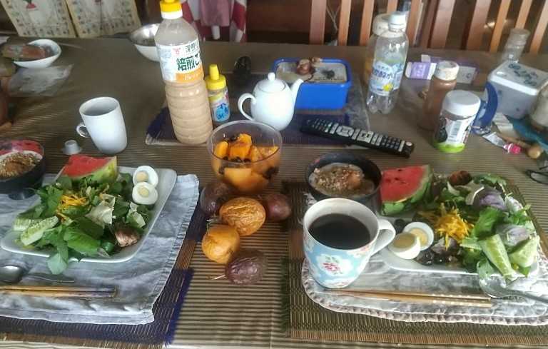 👆 なあんだぁ南国旅に出ると 朝のバイキングデザートに お約束のようにでるものです一昨日 G・の休憩時 お茶うけに二個ずつ手渡されてなんとぉ~ シマで作ってるんやぁ朝食Vikingで 夫婦揃ってアホ程食べてタネはそのまま ナプキンに包んで持ち帰り我が畑にタネ撒けども 育った試しナシ少しは大きくなったものあるとゆうものの実が出来るのは予測不能今年はあちこちから送って来る水ナス 取りに来るようシマ友達に往きの無人市で見かけて買ってきたと一袋手渡されました一袋 5個入りで100円良心的な価格道中で見かけたものは 一つ100円で売ってたらしい珍しいから仕方ないのかな この価格は・・・・昨日の海そば温泉でのエピソードです干潮時間 夕方四時前の温泉ただでさえ暑い 勝手知ったる我が温泉真ん中の湯舟に水道ホース引き入れ湯温下がるの待つことに若いカップルやってきて 興味津々 彼氏だけ 次々に浴槽制覇一番下の湯舟 入ったらやけどする温度かとタオル腰に巻き 入る気ぃ満々でしゃばりおうめ このが・・・・つい 優しくアドバイス「此処に入る気ぃ? 自分の愚かさ 思い知るでぇ」おにいさん 一歩足入れて すぐ「思い知りましたぁ」折角 この素敵な温泉にきたのだからつい 仏ココロでます「ダレも居ないうちに 写真撮ったげよっ」素直な二人 素直にワタシの指示に従いいつもの撮影スポットに移動 お気に召してもらったようで善かった~彼女の口から意外な事実「あのねぇ カレ 今日がなんですぅ 善い記念になりました ありがとうございました」「それは それは おめでとうございます」袖すりあうも他生の縁一日一膳? いや 一善! 善いことしたご褒美 ありますやろかぁ