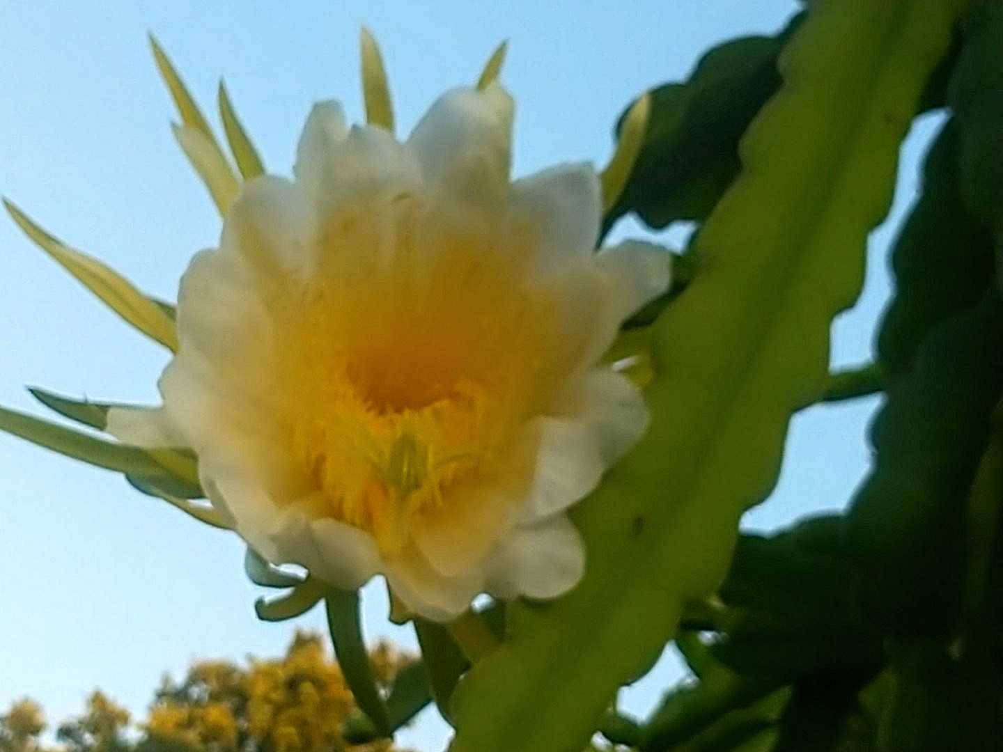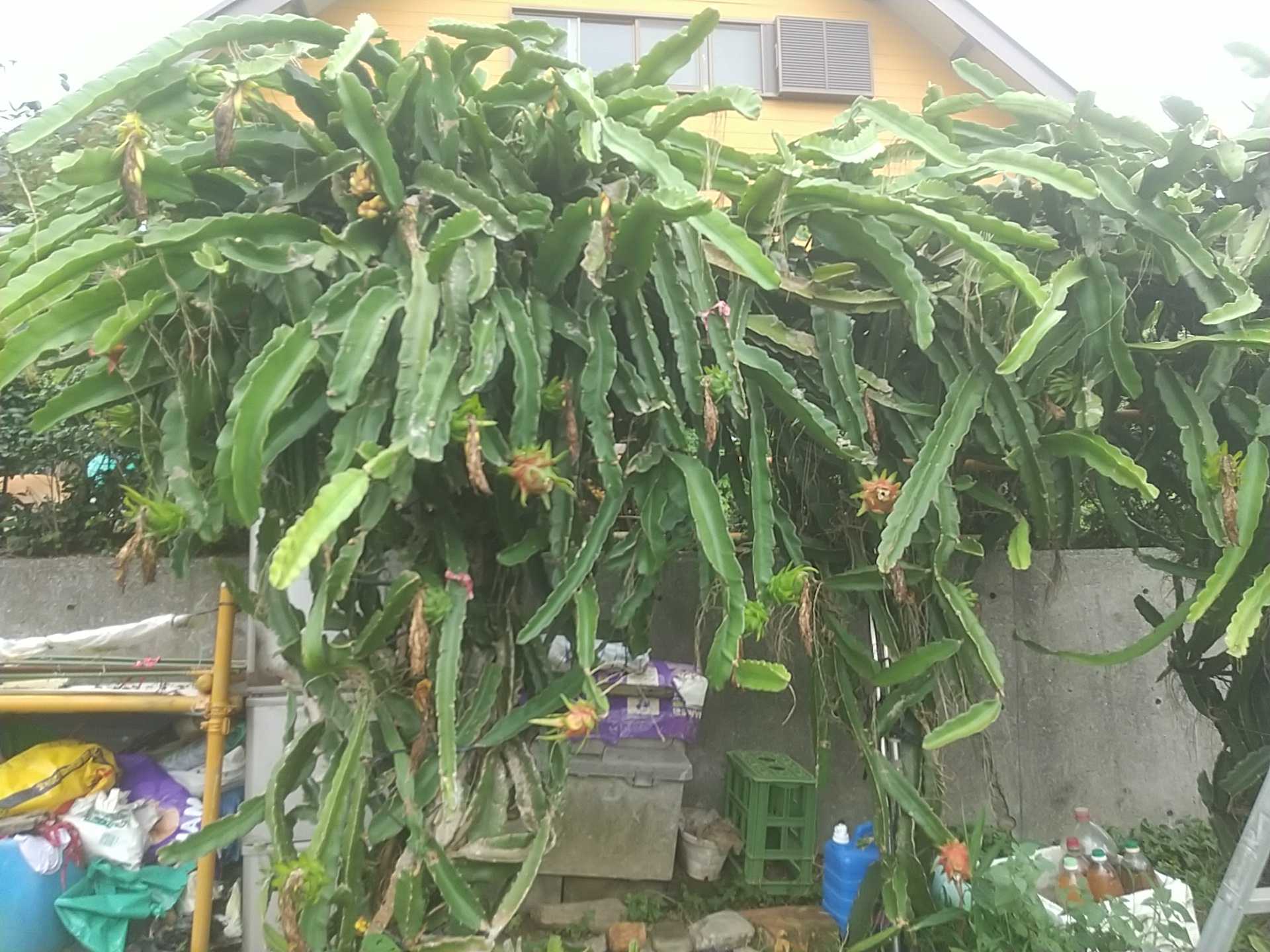 ここ数日は大潮 満月 条件揃ってドラゴン様開花一昨日は 眠い目こすりながら テツパチーノ 九時過ぎに畑で受粉三個開花 一仕事終え 寝間に着くなり嗚呼 無念せめて一時間 降雨遅かったら 受粉成功したのかと 先日受粉したどらごんさま やっと 実になり完熟してると期待大 育てたモノの上前ハネル不届きモン裏返して 美味しい部分 きっちり盗み喰いしてる蟻? 鳥? 犯行現場観てないから特定はできんけど~美味しいと思える時期 彼らが一番周知この地では 先住者の生き物と共存するのも生き方のひとつけどねぇ・・・・勿体ないから かじった部分大きく切除 中身 半分弱になったけれど朝のデザート 贅沢そのものドラゴンさま お腹一杯食べました