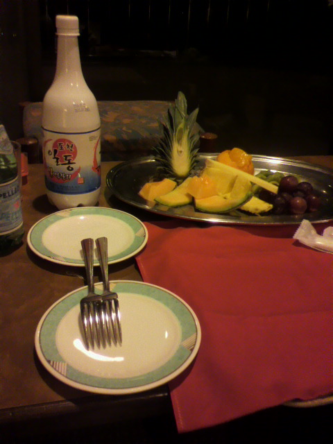 お友達の部屋にスタッフから立派なフルーツセットの差し入れ