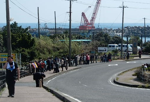 時間近づくと観光バスから降りる団体も