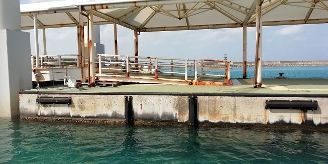 桟橋では ツアー会社のスタッフ出迎え