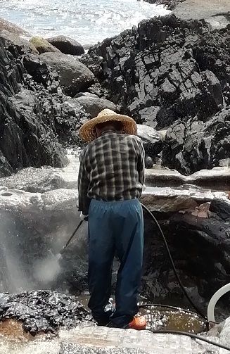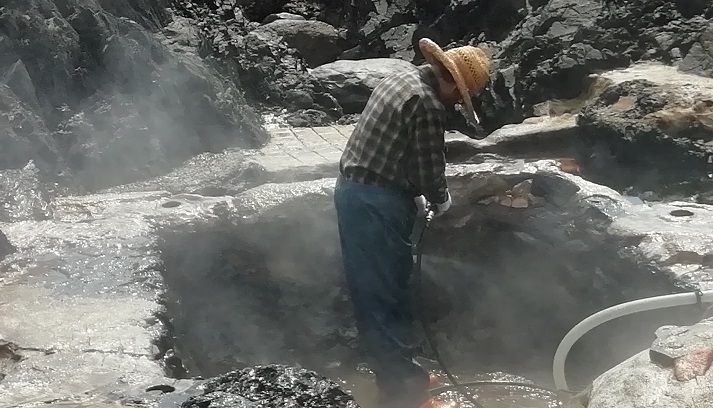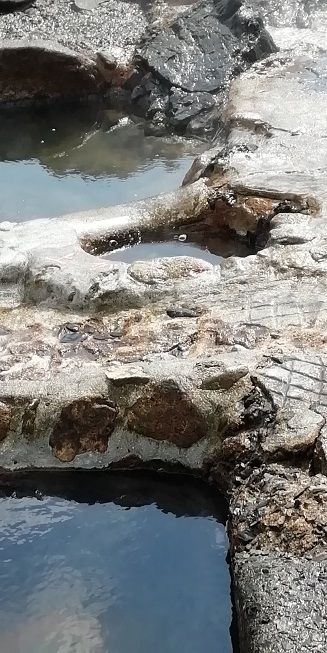エエタイミングで二つの湯船にお湯満ちてきてるから