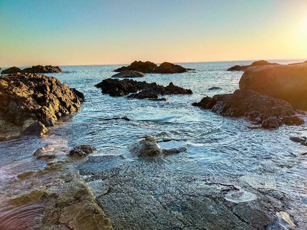 温泉に着いたときは もう 下の湯舟海水で満杯