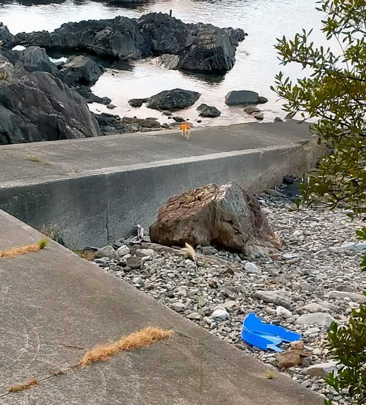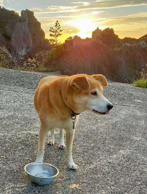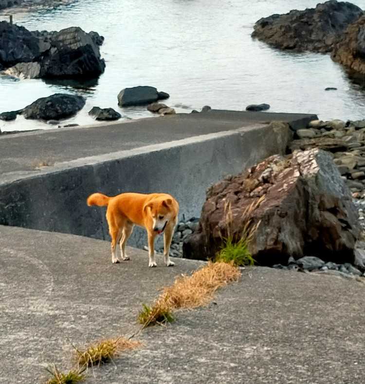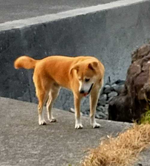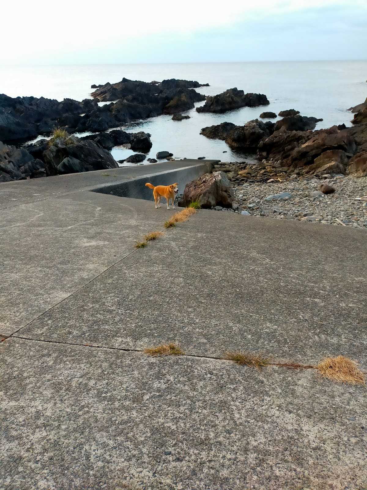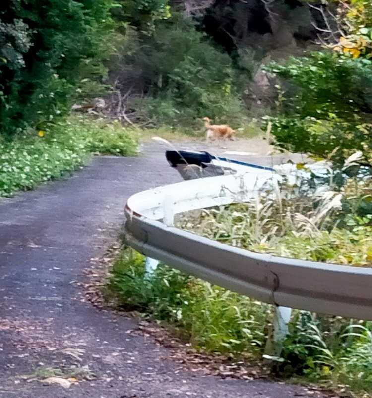 テツと一緒に 玄関でて 坂道下ってゆくと