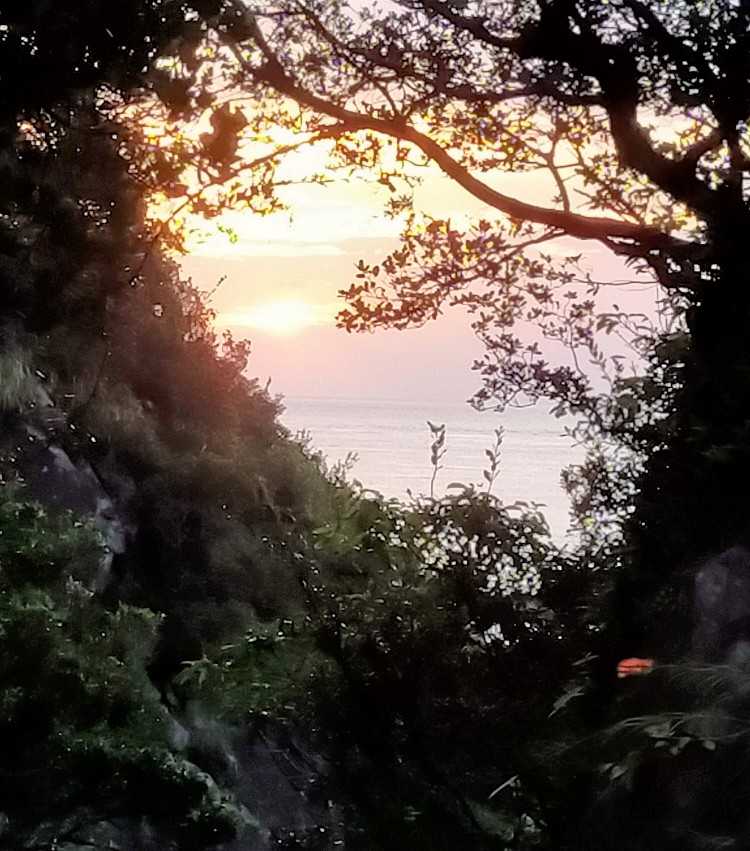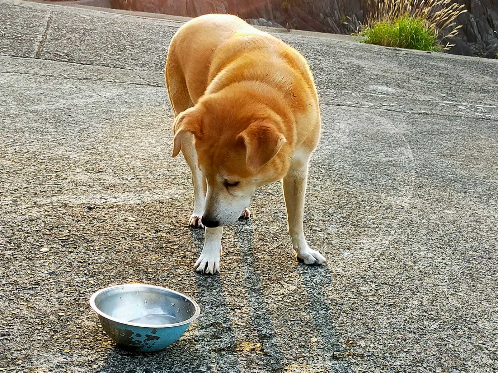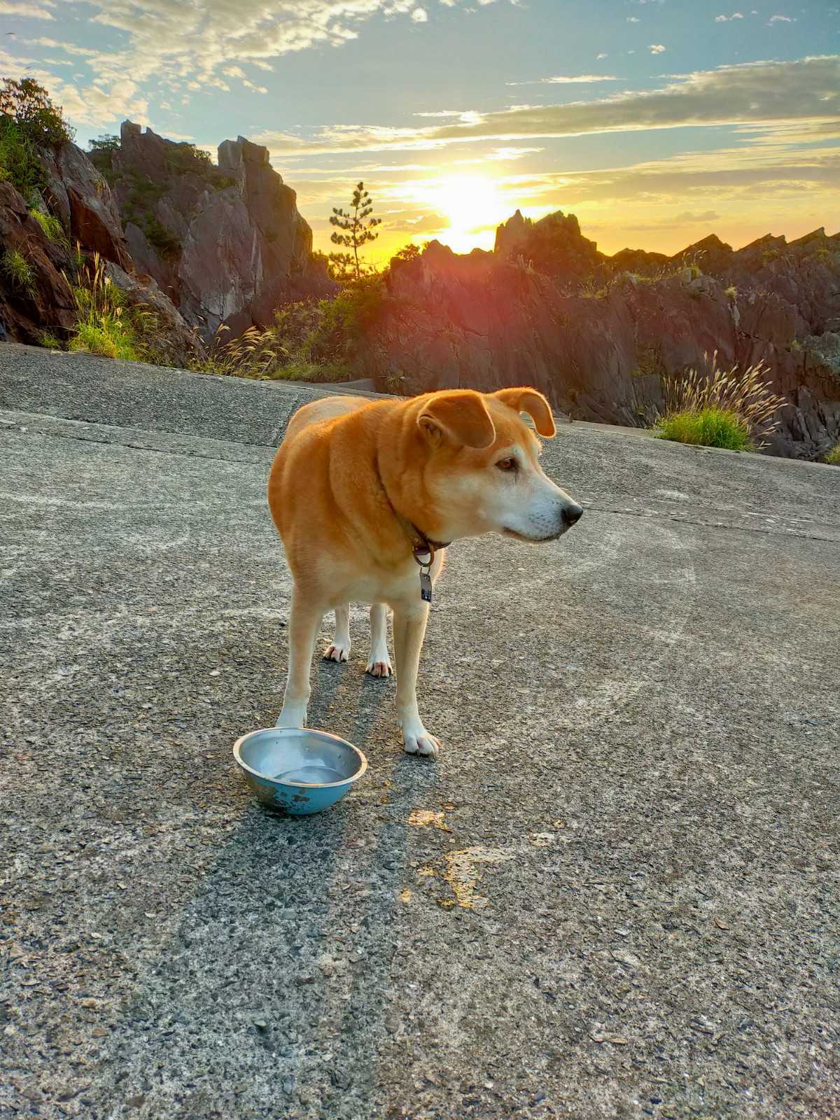 テツと一緒に 玄関でて 坂道下ってゆくと