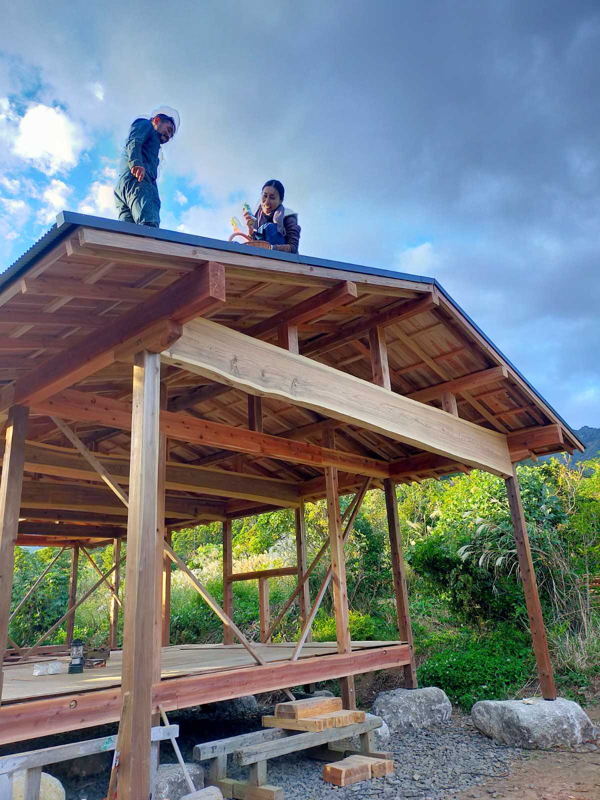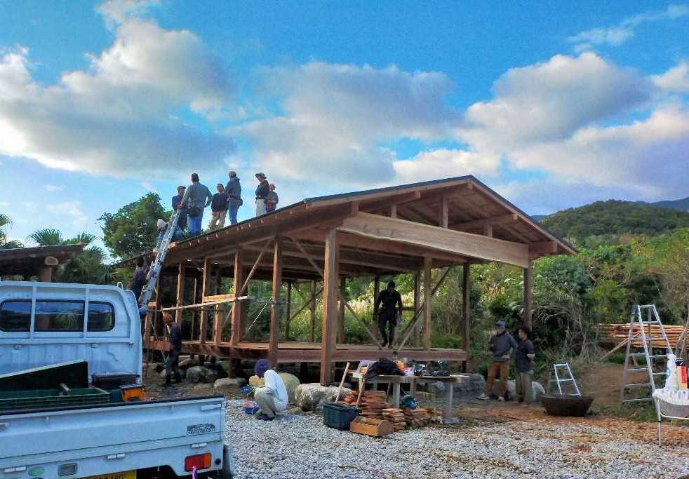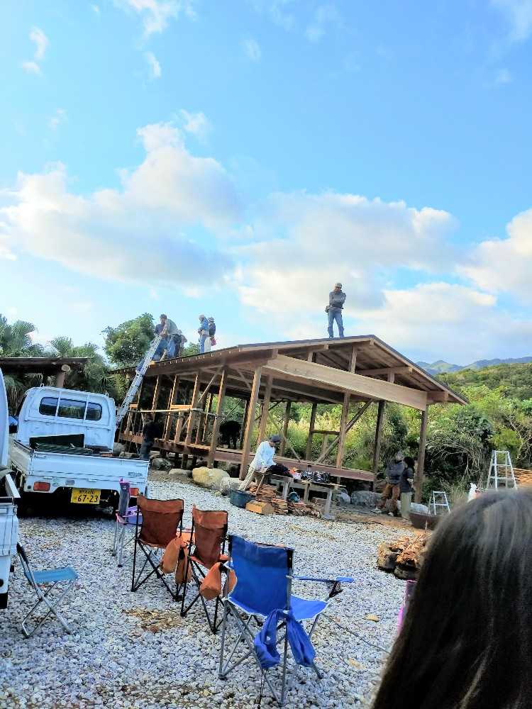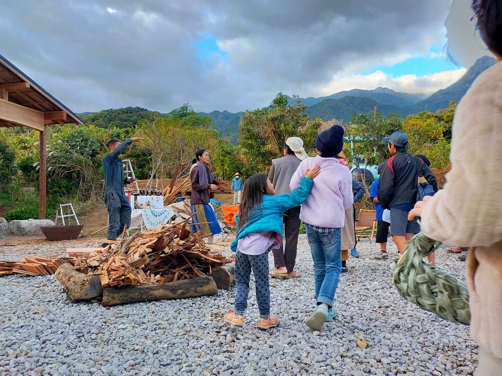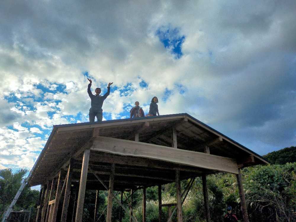 餅マキ開始時間来て ファミリ~ 屋根の上でご挨拶