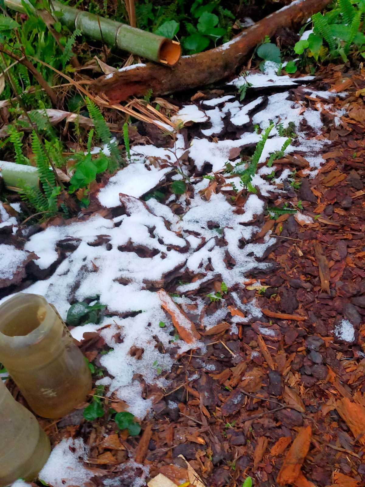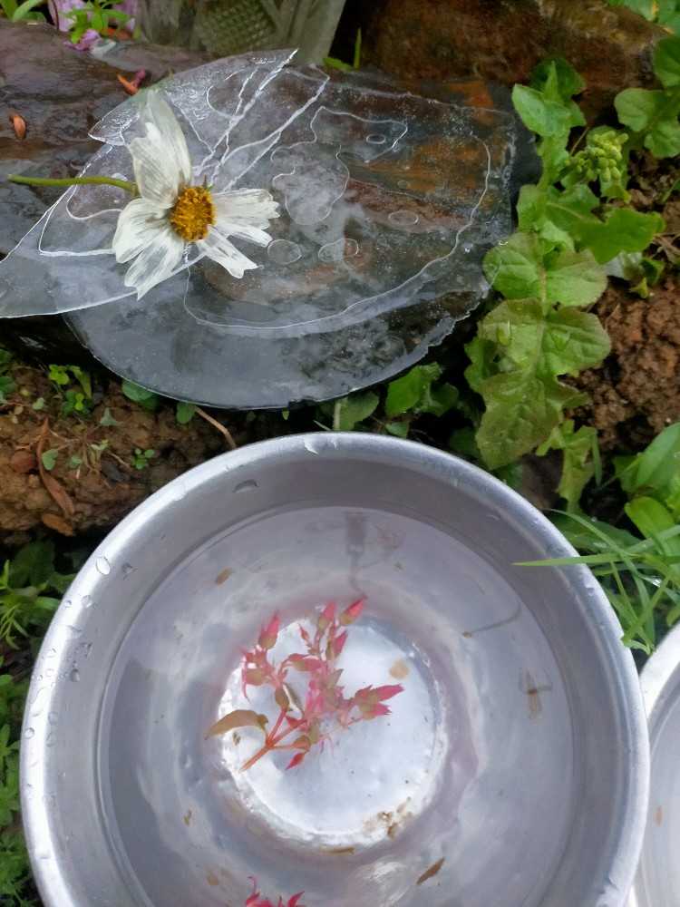 てつのお墓 水の入ったボール 薄氷張ってました