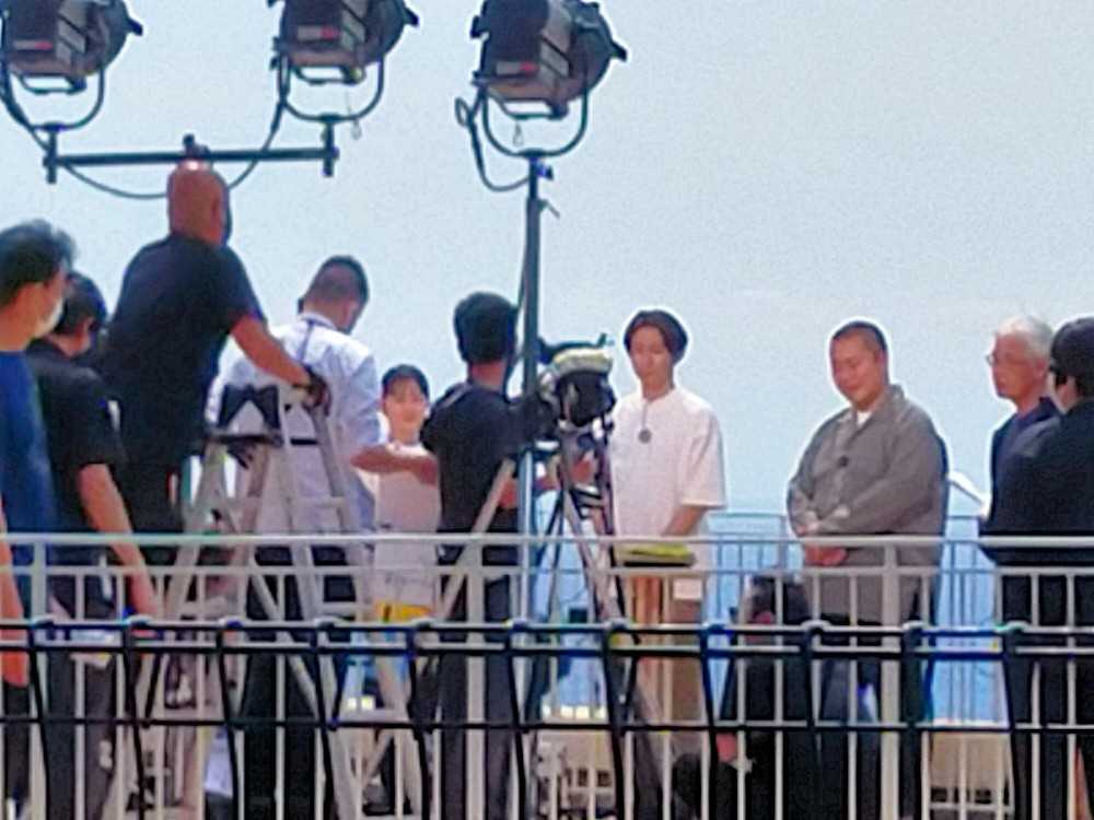 ギャラリー越しの雄大な山 撮りたいからワタシら邪魔!?