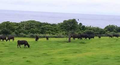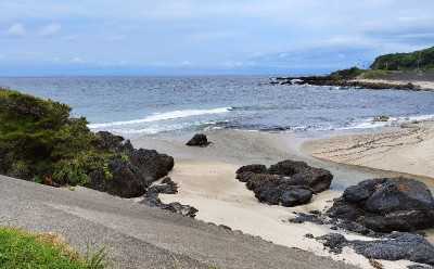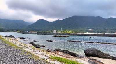 生憎の曇天 いつもの抜けるような青空 紺碧の海でないのが残念