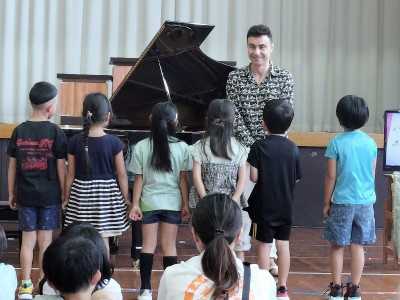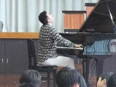 校長 ピアニスト互いの挨拶に始まり やっとピアノ演奏スタート