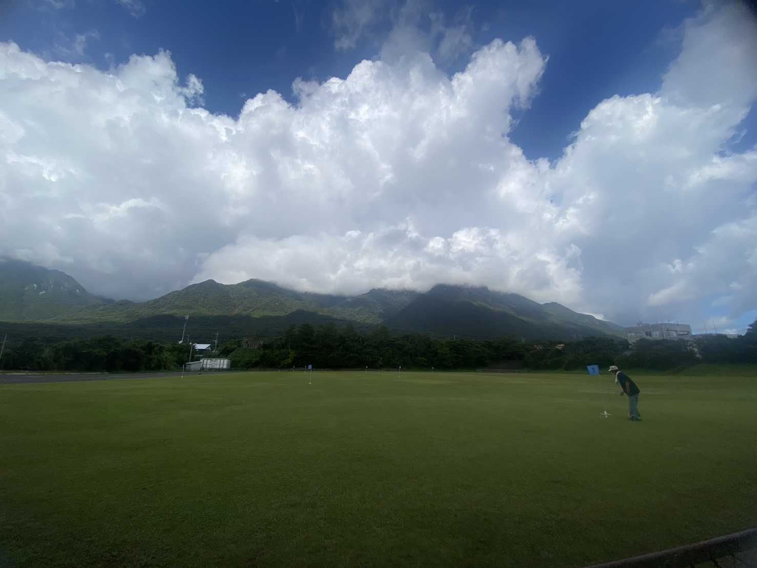 台風 やはりわが島は回避 島内よその地域は大雨 強風あったとか深夜に影響大との予想 見事に外れ 雨風なしで肩透かしけど 被害に遭われた地域思って胸痛みます近くの宿泊施設に短期滞在中のこーりーちゃんすっかり仲良しになり 昨日は一緒にグランドゴルフに行きました彼女 リモート学習 土日はフリーと聞いて最近 ゴルフの練習者少ないから大丈夫かとお誘いまずゴルフ倶楽部会長にお伺いたて 「善かよぉぉぉ 連れてきてもよいよ」 快諾甘えついで クラブあれば貸してほしいと「いいよ もっていくから」行く直前にこーりーちゃんからライン 「お友達 連れていってもよいですか」普段 四人乗りの軽自動車 ゴルフ行くときはゴルフ道具 シルバーカー 珈琲セット おやつ等乗れても一人追加がやっと結局 借りてるレンタカーで私の車追従ってことで手打ち一時過ぎに こーりーちゃん 約束の時間より10分早く立ってました二台連なり 練習場に着くなり 事情の知らない爺婆たち 👀白黒興味津々 痛いような視線飛ばしてくる可笑しさ普段練習しないけど二人に⛳ ルール 打ち方 マーカーの置き方伝授するため 半分だけ コース回りました そばで練習してるお仲間に「この二人 私のムスメなんよ~ 今日は優しくしたってね」👄の悪いおじい 「何がムスメじゃ 孫じゃろぉ」集合時間来て 全員整列 私が合図 二人 前に立たせて 自己紹介させます歓迎されてる雰囲気ひしひし今日は特別チームで せいちゃんチーム作って うちら夫婦&こーりー+びーるちゃんの四人編成笛なって練習スタート 相手チーム92歳の爺様なぜか 今日は絶好調 班長のけーいちろーさん「普段 おばさんばかりでやってるから 若い 別嬪さんとしたら 成績もよかろう」云ってる けーいちろーさんも心しか 鼻の下和やかにプレー進行 経験があると云ったこーりーより未経験のピールちゃんが上手くてホールイン1 一本入れて大騒ぎ成績つける班長 けーいちろーさん年寄りアルアル若い子の顔は見分けにくい? 外国人ゆえ 名前も覚えられない??何度も点数のつけ間違い二人の顔覚えんのが致命傷でしょう三試合終えて お片付けも進んで参加 気持ち良い練習できました別れ際に皆さんにお手振り 両手バンザイスタイルでシマの爺婆さんたちも 異国の美人と一緒に遊べてうれしかったのか 皆さん全身使って 大きく手を振り返してくれました二人と別れ うちらは一週間の疲れ落としにヌルメ 温泉に 海は少し荒れてたけど 台風来てるようにはみえんかった