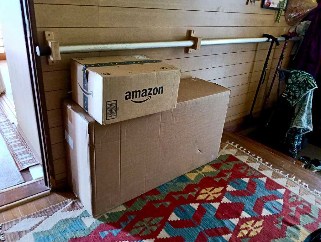 愛用してるシルバーカー 現在三台保有 散歩用 温泉行くとき用 室内用(寝起きの時 転んだらおしまいだから 用心して朝だけ利用)温泉用は シマ友のお母さんの形見 愛用してたけど 温泉までの道 結構荒れてるから先日 タイヤ部分のゴム 劣化の果てちぎれてしばらく我慢して利用してたけど こんなことで始末して転んだら悲しすぎるよって ネット甘損で購入 えっへん 我が家ぷらいむ会員 送料無料です前回買ったのは到着後組み立てが必要難儀してテツパチーノ組み立てたの覚えてたから今回は 組み立てなしのシルバー・カー選択一週間後届いたものに仰天もしかしたら~ 組み立て職人が段ボールに潜んでるのかと 折り畳みで半分に畳んで送付されたものの 巨大さに相当なモノ 頑丈なのは善いけれど~ 重すぎて 車に乗せるのが難儀結局 これを散歩用にしましたマックスサイズ 送料だけでも高額のはず 甘損さまさま・・・・上に載ってる箱は 旅行用の夫婦お揃いのシューズです先日 サトイモ掘りの仕事紹介しました温泉でMちゃんに逢ってその後の経過聞きました最初賃金交渉してたのに おっさん 予算超えたからと値切ったそうな本人は気にしてない サトイモ バナナ貰ったしぃ賃金少なかったけど善いからと納得けど 仲介に入ったワタシが腹立ててもう そっくすには逢いにいないでおこうとけど 犬に罪はなし 言いたいこと おっさんにはっきり云わんと気が済まん雨予想の昨日の朝 そっくすに逢いに行きました ピンボケになるくらい大喜びのジャンプ おやつあげて おっさんから事情聴きました 諸々の状況きいて ワタシも納得当人同士が文句ないんだから そんで善いと思いました 少しだけと差し出されたサトイモ頂き 帰り道急ぎました必死に紐引っ張って着いてくるコ可愛いけど 我が家では飼えません 必死に歩いて未練断ち切りました速足で帰ったのは 前日海水で埋まってた海そば温泉朝の時間なら入れるかとばけばけ見て 洗濯モンも干さずに行ったのに海水溢れ湯舟さえ見えずさすがに~曇天で日差しのないヌルメ温泉には勇気なし二日続けて海そば温泉入れず 風呂に入らんとゆう選択肢 我が家にはない久しぶりに自宅・「●メの湯」に湯舟に入るとき 今まで出入りに難儀してたのが 伸びしろあったんでしょう軽く足上げるだけでスムーズに湯舟に浸かれる幸せ確実にワタシ 前進してます
