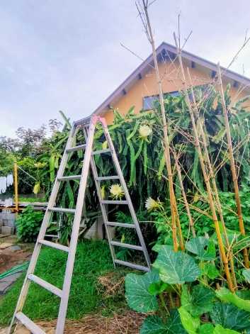 夕べも沢山ドラゴン様開花 今回は雨にたたられることもなく順調 朝六時過ぎると さっさとしぼんでしまうから 散歩前に撮影撮影終わると同時にG・会長からでした 奥様 診察で本土行 渡したいものあるから接骨院帰りに寄るようにとそうなると早く我が家でないといけないしぃ 今日はいつもの散歩コース歩くのも気が進まないしぃ歩ける気力切れたら?帰るつもりでぼちぼち歩いてゆくことに 10分歩いたら 前方にスラっとした女性タブレットで景色撮影しながら歩いてる人見知りのワタシ なぜか今日に限って この👄がモゾモゾ「こんにちわぁ」振り返った女性 スラっとした別嬪さんワタシと一緒 日本人離れした端正な顔立ち「 you ジャパニーズ?」「ふぃりっぴんから きました~ にほんご だいじょうぶですぅ」「花の写真 撮りたいなら 今 希少なドラゴンさま 咲いてるよ なんなら着いてくる?」にこっと笑って一緒に歩き出します聞くと 彼女 近くのシェアハウスに短期滞在中暫く歩くと シェアハウス仲間と出会い ワタシも顔見知りだから 一緒に畑に案内まず ドラゴン様から案内 続けて・・・・・ 酷暑のせいで 背高のっぽになってまだまだ最盛期のオクラ ジャングル状態のモロヘイヤに驚愕 数枚ちぎって持ち帰り~ 👆 🍓 👇ローゼル た●かん ますます大きくなりましたまた いつでも善いから遊びにおいでぇとお誘いして解散朝ごはん終えて 接骨院へ先に会長宅に寄って 沢山のお土産頂きました 吉祥天さんちで 最近見かけた饅頭入ってて嬉しくて「アンタが好きだから 買ってきたんだよ」 可愛くないワタシ「ワタシ 饅頭よりお金が好きっ」 「ワタシも そうだよっ」とキヌちゃん 柿とリンゴ&梨配りながら接骨院行きまた 患者さんたち 笑かして・・・・ 帰って土産広げたら・・・・ さつまいもの天ぷら 茹で栗 早生🍊 六個入りの饅頭 二つは柿に添えて おすそ分けしてきました夕方 温泉から戻ると 今朝友達になったコ立ってました「にほんごのべんきょうしたいから おとーさんの畑 てつだいたい くさはらいでも なんでもおてつだいします」「アハハっ おとーさん無口だから 日本語の勉強にはならんわ ワタシは暇だから また遊びにおいで~」おもえば 不思議今朝 六時半まで見ず知らずの異国女性 夕方 六時にはライン交換して一緒に遊ぶ約束してるとは・・・