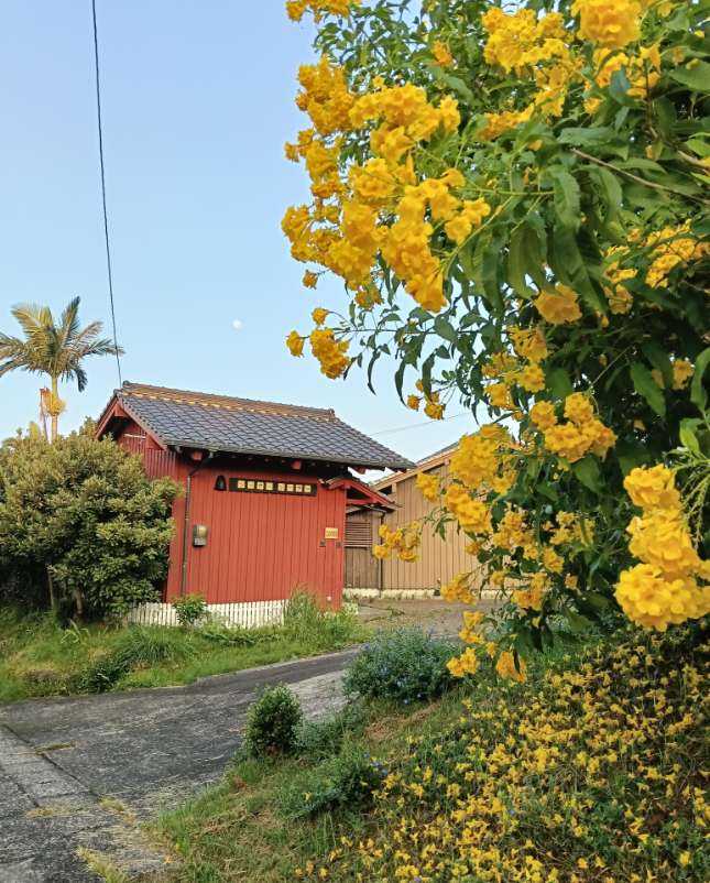 いつもの散歩コースです 近所のシェアハウスの若者 仕事行く姿 毎朝すれ違う時 かわゆくお手振りこの歳で若い男性と友達に・・・・・ あははっ カレ先日入籍したばかりです 県道わきの雑草なんとか竹 道まで出しゃばってきて歩き難いから 毎朝 か細いお手手で バキッとへし折りながら闊歩今日は 干潮時間考えて 午前中に海そば温泉に すこし早い時間だから 入浴者入ないと思ってたのに 熟女集団 タオル頭にのせ ほぼほぼ裸体丸出し捨ておくわけにもいくめぇつい お声掛け「タオルは 頭ののせるもんと チャイます! 湯舟にタオル着けても善いから 前隠して入ってんかぁ」通常の温泉マナー湯舟にタオル着けるのはご法度昭和のオンナたち それ守っただけなれど海そば温泉 男女混浴 裸体露出はマナー違反「若いコなら 皆さん 喜ぶけど お宅らの歳は 迷惑でっせぇ」素直なイニシエ山ガールたち 慌ててタオル湯舟に着け入れ 巻ききれないけど形だけ タオル巻いてくれました彼女たち 連日 シマの高い山走破して 今日の最終便で帰るそうな先週出会った男性 二日続けて遭遇ワタシは覚えてなかったけど翌日 「タオル巻けって おばちゃんに怒鳴られたわ」よって 二日目はお利口さんル‐ル守って一緒に温泉四方山話に華咲かせましたカレ 自動車関係の仕事で亜米利加暮らししてたとか温泉から上がるタイミング合わせ 一緒に駐車場まで「一緒に写真撮っても善いですか?」温泉女優 マネージャーに相談もなく 彼と 温泉神社の前で写真に収まりました最後にカレ「シマにきて 一番 おばちゃんが面白かった~」これって 褒めことば?連日 世界中から 観光客きて ワタシの辞書に退屈とゆう文字なし