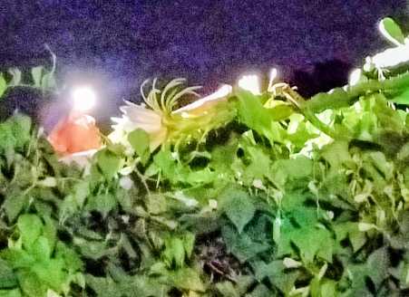 ここ2~3日前から またドラゴン様開花但し 暦だけ?夏の終わりのせいやろか 一晩に咲く花の数は数が減っても 受粉作業の手間は変わらず昨日のことです楽天ブログ更新終えて観ながらテツパチーノに問います「今日は 何個咲くの?」 「たった 1個かな?」以前放映したドラマの二時間特別編 ドラマに見入ったとき 「ぶっちん」突然 真っ暗 停電に雷の予告あるでなし 雨一粒も落ちてないのに一瞬でワタシ 女優オードリーの振る舞い 「暗くなるまで待って」のヒロインで~すまず 携帯で足元照らし 懐中電灯置いてる場所までここで一抹の不安なんと 携帯のバッテリー残量がほぼ無きに等しいこのまま通電遅れたらアウトまず ご近所 窓の灯り確認善かった~ 周り皆真っ暗けうちの電源ブレーカー落ちたんではなかったよその地区はどないかと MIYAちゃん ルミちゃんにも問い合わせ二人とも島んちゅ 停電~っと冷静な返信真っ暗ではなんもでけん 寝るしかぁテツパチーノ 立ち上がり つい「どこ行くのぉ~」 「受粉してくるわ」真っ暗の中 畑に行くのはいかがなものか「大丈夫 だいじょうぶ」いつものスタイル 頭に懐中電灯現代風八墓村スタイルで ワタシも少しはお手伝い リビングから懐中電灯照らしましたいくらライト付き杖貰ったといっても夜間の畑はデンジャラス無事帰ってきて やれやれ・・・・・仕方ないから歯磨きしようと立ち上がった途端 「パッ」ローソク点けたり 予備の懐中電灯探したのに・・・・以前は早くて1日 長くて1週間停電継続したのにねぇドラマの続き見ようとして 外の物音に気付きましたなんとぉ 雨降りだし 時々雷鳴 雨の勢い激しさ増して・・・・・受粉直後の豪雨 テツパチーノの苦労水泡に・・・・・結局 テツパチーノ肩落としながら寝間に・・・・ワタシはそれからいつものパラダイスえへっ 不治の病また発症 来年の旅 いろいろ検索中あっ 忘れてました昨日のクイズは イエローグァバ ワタシは甘酸っぱいから好きだけど短所は種が固くて小粒欠けてる歯 虫歯に挟まったら最悪パターンテツパチーノは大チライです 沢山 落下してるのに 拾ろう事もせんのよ~