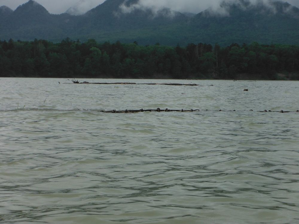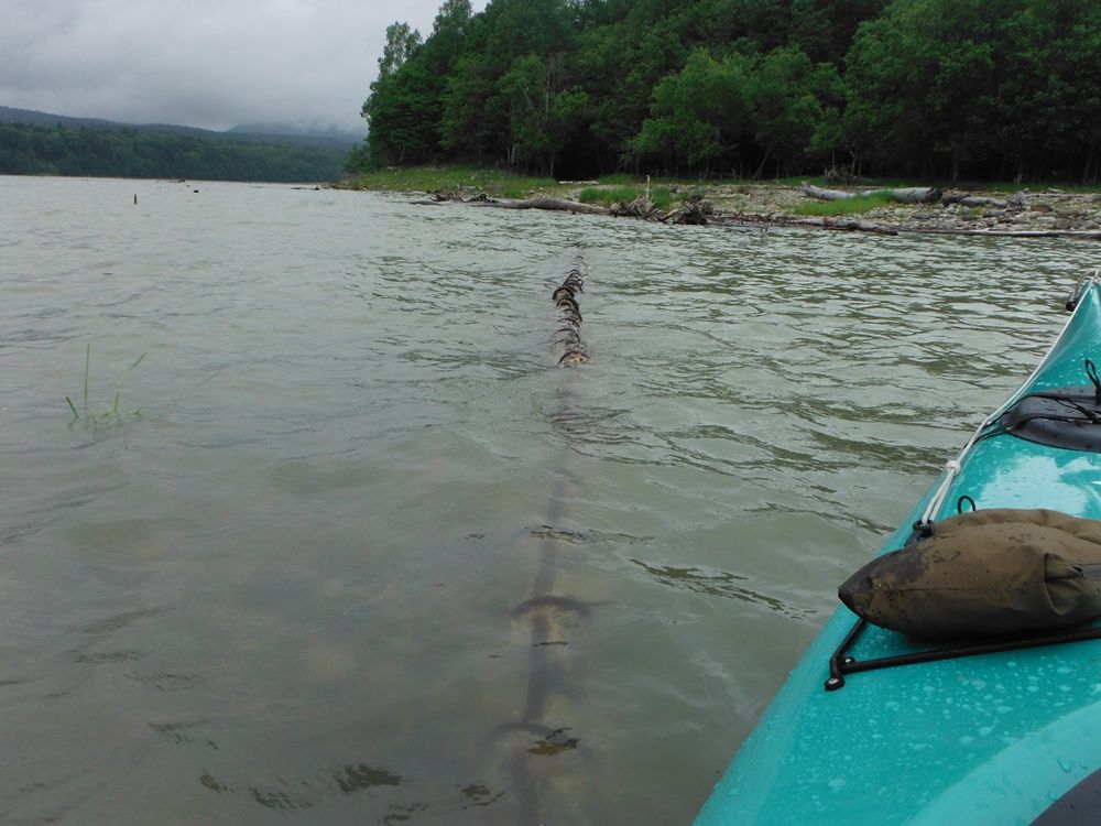 さらに漕ぐこと約2時間で目指すタウシュベツ橋辺りに到着したはずが流木しか見当たらない・・・