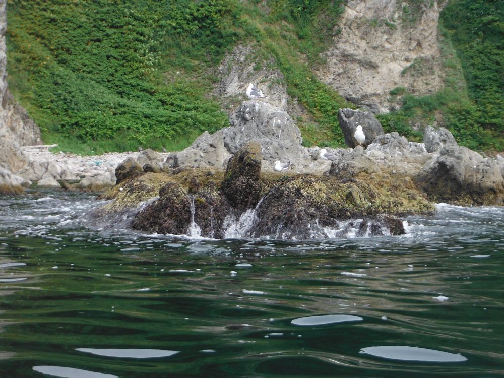 途中の岩にはカモメが休憩中だけどかなり近くを通っても微動だにしません。