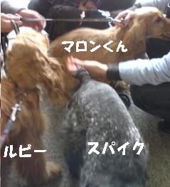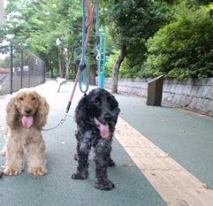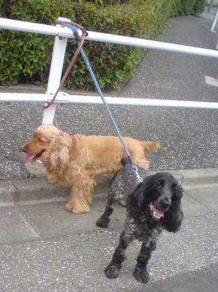 スパイクとルビーに出会ったペットショップでオフ会がありました。Eコッカー・Aコッカー・シュナウザーが集まり、Eコッカー来るかな?と期待を込めて参加しました。期待通り!!レオンくん(ブラック)&マロンくん(ゴールド)と初めてのご対面 でも、レオンくんは、スパイクと同じペットショップの先輩卒業生でスパイクの事は気にかけて見ていて下さっていたそうです。なんだか、同じEコッカーなのにレオンくん&マロンくんはとても上品~スパイク&ルビーは、人見知り、犬見知りなくどんなワンコに吼えられても遊ぼう~と寄っていき、相手にされず最後には、飼い主さんにいっぱい甘えて、なんだか恥ずかしいでも、飼い主に似るっていうから、私なんでしょうね・・・・