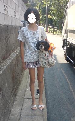 久しぶりに明るい時のお散歩です。マルガリータのスパイクですが、それでもかなりの暑がり!!ルビーは、暑くたってパワー全開!!!引っ張り癖があるスパイクに耐え切れず・・・娘は、おんぶしています。お散歩の意味ないよ~