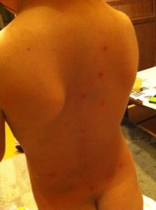 ばい菌性の結膜炎で保育園をしばらく休んだこみんじゃ。お休みの間、クラスでは水ぼうそうが流行っていたらしく、復活してまもなく、いやもれなく貰ってきました。飲み薬と塗り薬で治療し医者から治癒証明が出るまで5日間。予防接種を受けていたおかげで軽くてすみました。