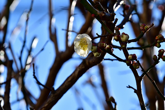 今朝、庭の梅の木に一輪の花が咲いていた。このところ寒い日が続いているが、植物ははや春を感じているようである。白く膨らんだ蕾も数多く目立っているので、これから毎日一輪、二輪と咲き出すことだろう。