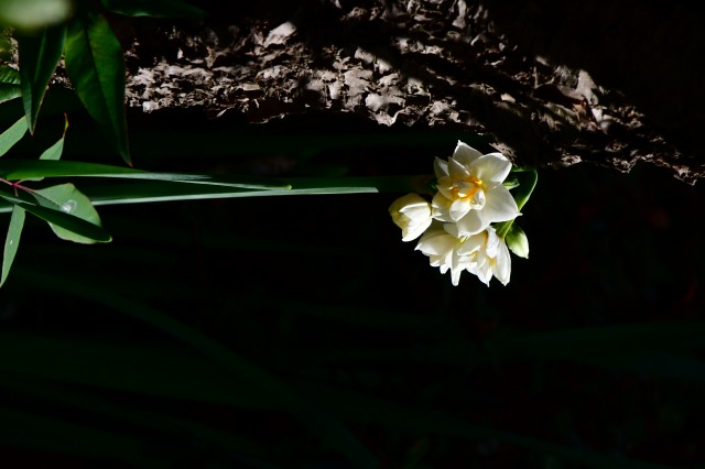 梅の木の下にある水仙がひょろ長く伸びていた。蕾は持っているのだがなかなか咲かない。それがやっと昨日開いた。でも買って来た時の花とは違う。何か水仙の原種のような感じ。何年か経つと先祖返りをしてしまうのだろうか。