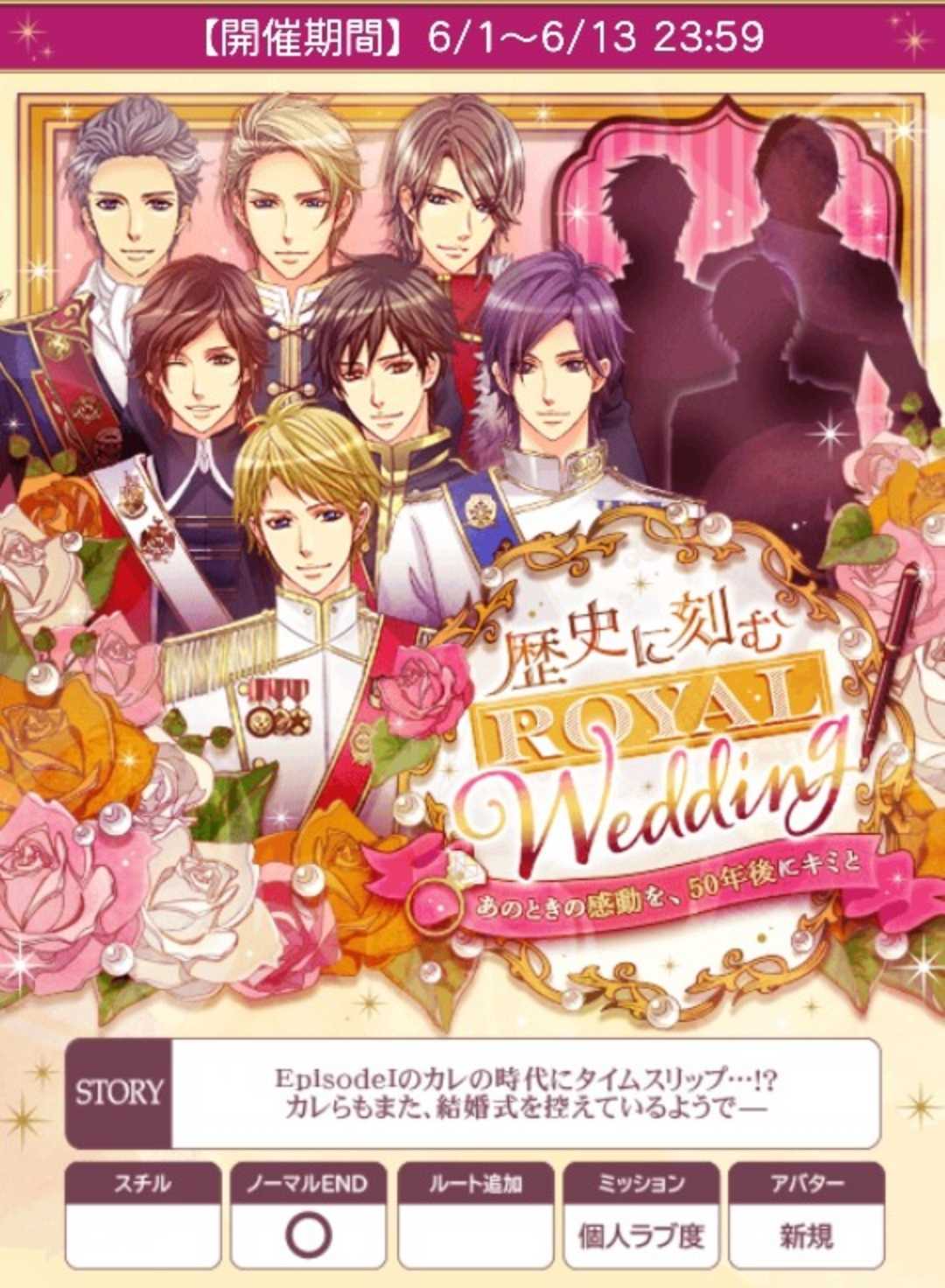 【6/1日(日)~6/13日(金)】『歴史に刻むRoyal Wedding~あの時の感動を、50年後にキミと~』🍀早期詳細&FV予定は前半参照自愛8,000総愛1H√15,000 (20,682)2H√45,500 (20,682)3H√71,500 (29,792)4H√101,000 (38,847)5H√141,000 (50,358)6H√186,000 (62,000)7H√229,000 (71,563)1N√168,000 (49,412)2N√189,000 (52,500)3N√210,000 (55,264)4N√231,000 (57,750)5N√252,000 (60,000)6N√273,000 (62,046)7N√294,000 (63,913)単価21,000♦️オリバー♦️stage1A:刺繍を見せる★B:帰ろうと促すstage2A:怪しい者じゃないB:俺を信じてほしい★stage3(H)A:真似したって怒られるかもB:アルタリアの伝統にする?★stage3(N)A:ちょっと待ってと言うB:もっといいものがある★♦️マックス♦️stage1A:綺麗すぎる★B:……見惚れてたstage2A:どうしたんですか?★B:眠れないんですか?stage3(H)A:俺の気持ち★B:なんだと思う?stage3(N)A:賛成ですB:何がいいですか?★♦️イヴァン♦️stage1A:緊張し過ぎだB:まだリハーサルだぞ★stage2A:尋ねるB:尋ねない★stage3(H)A:また思い出すB:一生忘れない★stage3(N)A:目配せする★B:助言する🌹50文字の纏めオ1刺繍2信じてH伝統Nもっと◆マ1綺麗2どうしたH気持ちN何が◆イ1リハ2尋ねないH一生N目配せ