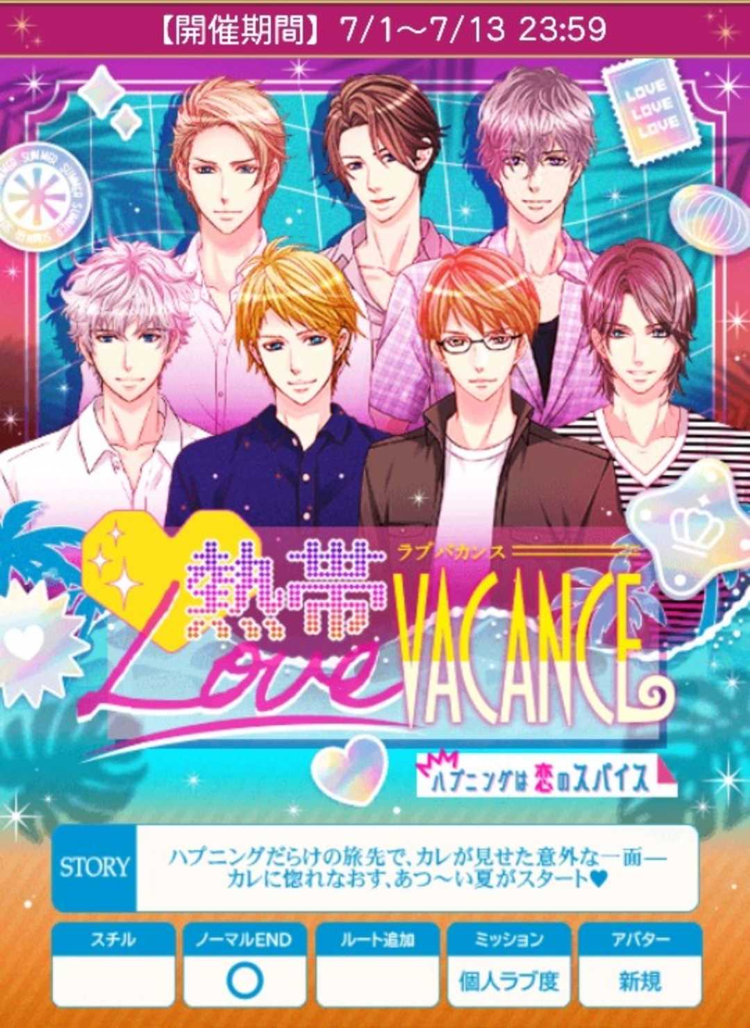 🌹誤字修正しました🙇🌹7/1日以降のアンケート回答特典変更→交換所・ハートCP・ガーデンCPのカフェラテ付与追加🌹アンケート2日(終了)&7日まで(カフェラテ各1個に変更)🍀26〜31日の本編パチ数予測は100回前後🍀1〜13日のイベパチ数予測は270回前後(負けパチ考慮なしです)【7/1日(火)~7/13(日)】『熱帯Love Vacance~ハプニングは恋のスパイス◆~』★個人ラブ度特典■30,000「銅の鍵(ミハイル)X3」■45,000「銅の鍵(ミハイル)X4」■55,000「銅の鍵(ミハイル)X5」■65,000「銀の鍵(ミハイル)X3」■ 80,000「銀の鍵(ミハイル)X5」■120,000「アナタの隣に寄り添うミハイル」■150,000「銀の国宝の鍵」■180,000「銀の国宝の鍵」■ロイ早期7/4日24時迄に2H√クリアで「貝殻からこんにちは」■早期7/7日20時迄に4H√クリアで「星砂を探して」■後半早期7/11日24時迄に6H√クリアで「海辺で貝拾い」★F予想■ロイ 7/1日17〜24時■ロイ 7/2・3・4日20時■早期 7/5日20時■早期 7/6日20時〜7/7日20時■後早 7/7・8・9・10・11日20時■中間 7/12日12〜24時■ラス 7/13日12〜24時自愛8,000総愛1H√15,000 (7,500)2H√45,500 (20,682)3H√71,500 (29,792)4H√101,000 (38,847)5H√141,000 (50,358)6H√181,000 (60,334)7H√222,000 (69,375)🌹ノマ総愛予測1N√168,000 (49,412)2N√189,000 (52,500)3N√210,000 (55,264)4N√231,000 (57,750)5N√252,000 (60,000)6N√273,000 (62,046)7N√294,000 (63,913)単価21,000■参考数値『歴史に刻むRoyal Wedding~あの時の感動を、50年後にキミと~』(2025年6月)自愛8,000総愛1H√15,000 (20,682)2H√45,500 (20,682)3H√71,500 (29,792)4H√101,000 (38,847)5H√141,000 (50,358)6H√186,000 (62,000)7H√229,000 (71,563)1N√168,000 (49,412)2N√189,000 (52,500)3N√210,000 (55,264)4N√231,000 (57,750)5N√252,000 (60,000)6N√273,000 (62,046)7N√294,000 (63,913)単価21,000♦️ヘンリー♦️stage1A:私が引きます!★B:シオン王子に引いてもらうstage2A:無理やり下りるB:寝たふりする★stage3(H)A:会計をする★B:呼び込みをするstage3(N)A:2人で作ろう★B:俺が作るよ♦️ケヴィン♦️stage1A:彼に聞く★B:挑戦しないstage2A:彼をじとっと見つめるB:お礼を言う★stage3(H)A:謝るB:彼に任せる★stage3(N)A:我慢しないB:我慢する★♦️ミハイル♦️stage1A:周りに調子を合わせるB:確認不足を謝る★stage2A:かっこよくて……★B:見慣れない姿なので……stage3(H)A:話題を逸らす★B:黙り込むstage3(N)A:許しませんよB:構いませんよ★♦️レオンハルト♦️stage1A:もしかして身体の具合が…?B:何か気になることが?★stage2A:2人のことですから★B:単独行動は怖いstage3(H)A:私にも言えることB:誰が悪いというわけじゃない★stage3(N)A:本当にもういい★B:貸しひとつですね■50文字の纏めヘ1私2寝H会計N2人◆ケ1聞2お礼H任NB◆ミ1謝る2かっこH話題N構◆レ1何か22人H誰がN本当★ランク特典■1~3位「金の国宝の鍵X2」■1~7位「金の国宝の鍵」■1〜90位■1〜100位(アプリ)「クールダウンバカンス」「金の鍵(ミハイル)X8」「銀の国宝の鍵X2」■1〜380位■1〜400位(アプリ)「巨大ハンモックでのたわむれ」「金の鍵(ミハイル)X2」■1〜800位「金の鍵(ミハイル)X2」