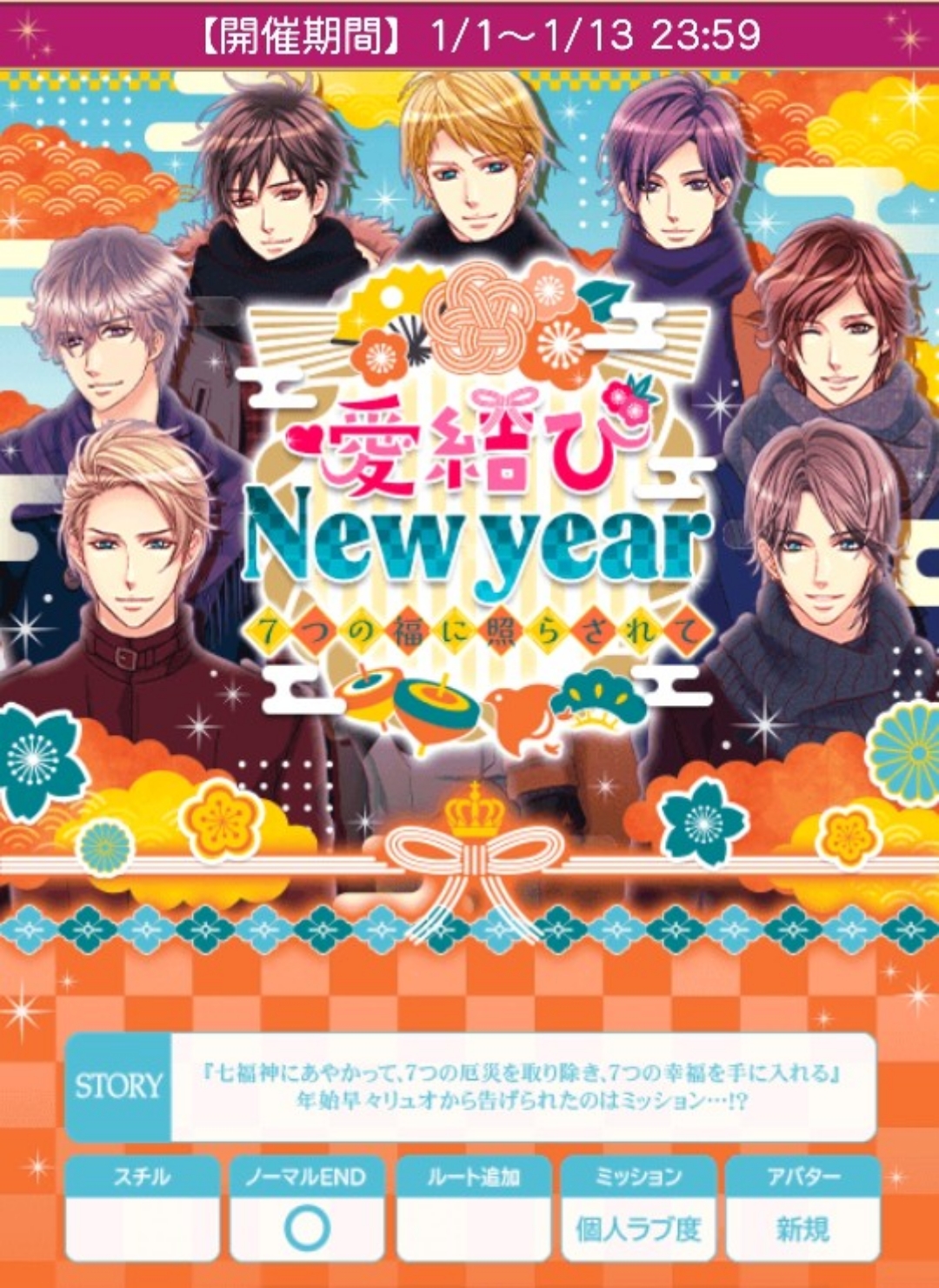 🌼🌼おみくじ引き忘れないよう注意して下さい🌼おみくじ配信1/7日24時までです🍀1日の最大本編パーティー数は19回。睡眠での体力もれを考慮した26日〜31日のパーティー回数予測は96〜102回。負け考慮はありません🍀イベントパーティー300勝ミッションは回復アイテムなし・自然回復でも1〜13日でほぼクリア可です(負け考慮なしです)『愛結びNew year◆~7つの福に照らされて~』【1/1日(水)〜1/13日(月)】★個人ラブ度特典■30,000「銅の鍵(アスラン)X3」■45,000「銅の鍵(アスラン)X4」■55,000「銅の鍵(アスラン)X5」■65,000「銀の鍵(アスラン)X3」■80,000「銀の鍵(アスラン)X5」■120,000「イヴァンからプリンセスへ花束を」■ロイ早期1/4日24時迄に2H√クリアで「お屠蘇でニューイヤー」■早期1/7日20時迄に4H√クリアで「縁結びでニューイヤー」■後半早期1/11日24時迄に6H√クリアで「宝船とニューイヤー」★F予想■ロイ 1/1・2・3・4日20時■早期 1/5日20時■早期 1/6日20時〜7/7日20時■後早 1/7・8・9・10・11日20時■中間 1/12日12〜24時■ラス 1/13日12〜24時🍀自愛8,000総愛1H√15,000 (7,500)2H√44,000 (20,000)3H√70,000 (29,167)4H√99,500 (38,270)1N√168,000 (49,412)2N√189,000 (52,500)3N√210,000 (55,264)4N√231,000 (57,750)5N√252,000 (60,000)6N√273,000 (62,046)7N√294,000 (63,913)単価21,000■参考数値「恋人たちのFirst Xmas◆〜サンタがくれたLove gift〜」(24年12月)自愛8,000総愛1H√15,000 (7,500)2H√44,000 (20,000)3H√70,000 (29,167)4H√99,500 (38,270)5H√139,500 (49,822)6H√184,500 (61,500)7H√227,000 (70,938)1N√168,000 (49,412)2N√189,000 (52,500)3N√210,000 (55,264)4N√331,000 (57,750)5N√252,000 (60,000)6N√273,000 (62,046)7N√294,000 (63,913)単価21,000♦️ヘンリー♦️stage1A:でも、大丈夫です★B:でも、立っていただけなのでstage2A:……どうしたんですか?B:えっ……★stage3(H)A:茶化さないでください★B:穴があったら入りたいですstage3(N)A:たまたまだよB:お祖父様のおかけだ…★♦️ジーク♦️stage1A:邪魔せず見守るB:声を掛けにいく★stage2A:早めに寝てもらうB:マッサージしてあげる★stage3(H)A:大変でしたB:楽しかったです★stage3(N)A:もっと勉強せねば…★B:俺は完ぺきだ♦️クオン♦️stage1A:今開けます★B:どうぞstage2A:寂しいB:がんぱろう★stage3(H)A:彼を褒めるB:肩に寄りかかる★stage3(N)A:礼を言う★B:気持ちだけ受け取る♦️マックス♦️stage1A:手伝えることありますか?★B:力になれなくてすみませんstage2A:マンガがお好きなんですね★B:なんだか意外ですstage3(H)A:マックスがカッコよかった★B:足を引っ張ってしまったstage3(N)A:そうだね★B:まだまだこれからだ🌹50文字の纏めヘ1大丈2えっH茶化N祖父◆ジ1声2マッサH楽N勉強◆ク1今2がんH肩N礼◆マ1手2漫画HマクNそう🌹ランク特典■1〜90位■1〜100位(アプリ)「宝船で新年をお迎え」(ヘンリー、ジーク、イヴァン)「金の鍵(アスラン)X6」■1〜380位■1〜400位「おせちで新年をお迎え」(クオン、ケヴィン)「金の鍵(アスラン)X2」■1〜800位「羽子板で新年をお迎え」(オリバー、マックス)「金の鍵(アスラン)X2」