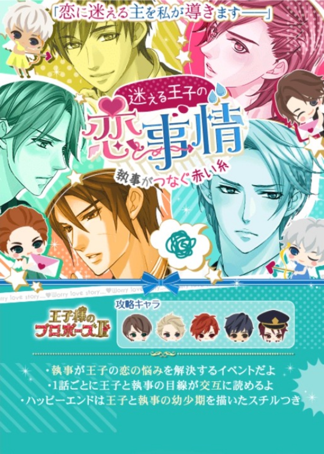🆕メンテナンス 3/26(水) am8:00~am12:00🆕🍀アンケート3/20日まで🍀ランキング特典1〜800位に「でか王子の鍵」が追加されました (ハーフアニバーサリーである今月だけのようです) 『【復刻】悩める王子の恋模様〜執事は愛のキューピッド〜』【3/14(金)〜3/25(火)】★個人ラブ度特典■25,000「銅の鍵(イヴァン)X3」■41,000「銅の鍵(イヴァン)X4」■50,000「銅の鍵(イヴァン)X5」■55,000「カレとラブラブ愛のリボン」■60,000「銀の鍵(イヴァン)X3」■75,000「銀の鍵(イヴァン)X5」■120,000「でか王子の鍵」★個人ラブ度特典「1着クローゼット」■8,000■16,000■24,000■32,000■40,000■48,000■56,000■64,000■72,000■80,000■88,000■96,000■104,000■112,000■ロイ早期3/16日24時迄に2H√クリアで「イースターガーデンで待ち合わせ」■早期3/19日20時迄に4H√クリアで「ラブラブイースターガーデン」■後半早期3/23日24時迄に6H√クリアで「イースターガーデンパーティーへの階段」★F予想■ロイ 3/14・15・16日20時■早期 3/17日20時■早期 3/18日20時〜7/19日20時■後早 3/19・20・21・22・23日20時■中間 3/24日12〜24時■ラス 3/25日12〜24時自愛8,000総愛1H√15,000 (7,500)2H√33,800 (15,364)3H√57,000 (23,750)4H√86,000 (33,077)5H√121,000 (43,215)6H√162,500 (54,167)7H√206,000 (64,375)1N√168,000 (49,412)2N√189,000 (52,500)3N√210,000 (55,264)4N√231,000 (57,750)5N√252,000 (60,000)6N√273,000 (62,046)7N√294,000 (63,913)単価21,000■参考数値「【復刻】キミに捧げるfirst time〜王子様と初めての××〜」(24年1月)自愛8,000総愛1H√15,000 (7,500)2H√33,800 (15,364)3H√56,500 (23,542)4H√85,500 (35,885)5H√119,000 (42,500)6H√154,000 (51,334)7H√190,500 (59,532)1N√168,000 (49,412)2N√189,000 (52,500)3N√210,000 (55,264)4N√231,000 (57,750)5N√252,000 (60,000)6N√273,000 (62,046)7N√294,000 (63,913)単価21,000♦️ヘンリー♦️アバMシースルーホワイトトップスstage1A:彼女はどうしたの?★B:珍しいなstage2A:即座に答えるB:一緒に考える★stage3(H)A:自分の作ったパンを食べるB:彼女の作ったパンを食べる★stage3(N)A:お茶を淹れにいく★B:保存袋を用意する♦️クオン♦️アバM上品グリーンスカーフstage1A:シオンを睨むB:2人を離す★stage2A:ありがとうございます★B:クオン様はいかがですかstage3(H)A:うれしい★B:アンタの方が赤いstage3(N)A:何も聞かないB:結果を聞く★♦️オリバー♦️アバMベージュストライプのショルダーバッグstage1A:素直に認める★B:違うと否定するstage2A:気のせいだと言うB:どうしてそう思うのか聞く★stage3(H)A:いい街だねB:幸せだね★stage3(N)A:1本だけですよ★B:タバコを隠す♦️マックス♦️アバMミントグリーントレンチstage1A:確かにその通り★B:でも、どうすれば……stage2A:そんなんじゃダメ!B:私が手本を見せます★stage3(H)A:何があったの?★B:あまり好みじゃなかった?stage3(N)A:頑張ってくださいねB:絶対大丈夫ですよ★♦️ジン♦️アバMオレンジチェックピアスstage1A:今すぐに食べたいと言う★B:勿体なくて食べられないと悩むstage2A:2人の間に何かあったのかB:業務で気になることがある★stage3(H)A:いてもたってもいられなかった★B:運命に導かれたstage3(N)A:ジンさんのためじゃないので★B:ルーカスさんに乗せられただけ♦️レオンハルト♦️アバM茶色のオックスフォードシューズstage1A:元気そうだったのか?★B:なにか伝言はあったか?stage2A:姫のためにもここで学べ★B:俺の顔を立ててほしいstage3(H)A:その格好は俺のため?B:今夜は貴女を離さない★stage3(N)A:これからも主をよろしく★B:何かあれば相談して♦️ルシオ♦️アバMグレージュのロールアップパンツStage1A:僕を誘惑するため?B:自分を可愛く見せるため?★Stage2A:ルシオが好きか?B:ルシオといて幸せか?★stage3(H)A:店に入る★B:買わないのかと聞くstage3(N)A:手伝う★B:自分はいらないと言う■50文字の纏めヘ1彼女2考H彼女Nお茶◆ク1離2ありH嬉N結果◆オ1素直2聞H幸N1本◆マ1確2私H何がN絶対ジ1今2業務HいてもNジン◆レ1元気2姫H今夜N主◆ル1自分2幸せH店N手伝う🌹ランク特典■1〜90位■1〜100位(アプリ)「イースターガーデンのスーパーモデル」「金の鍵(イヴァン)X6」「でか王子の鍵」■1〜380位■1〜400位(アプリ)「イースターガーデンの凄腕カメラマン」「金の鍵(イヴァン)X2」「でか王子の鍵」■1〜800位「金の鍵(イヴァン)X2」「でか王子の鍵」🆕