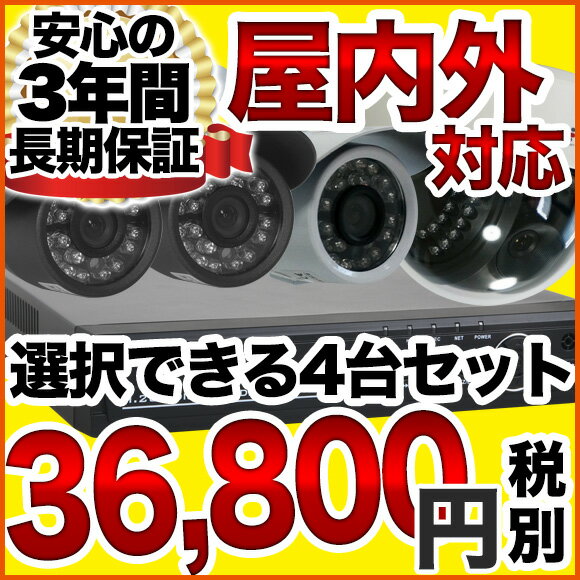 防犯カメラ 監視 屋外 屋内 選べる4台セット ドーム型 52万画素 家庭 事務所 録画 駐車場 おすすめ 防犯 モーションセンサー スマホ監視 防水 暗視 動体検知 防犯カメラセット SET-A1013