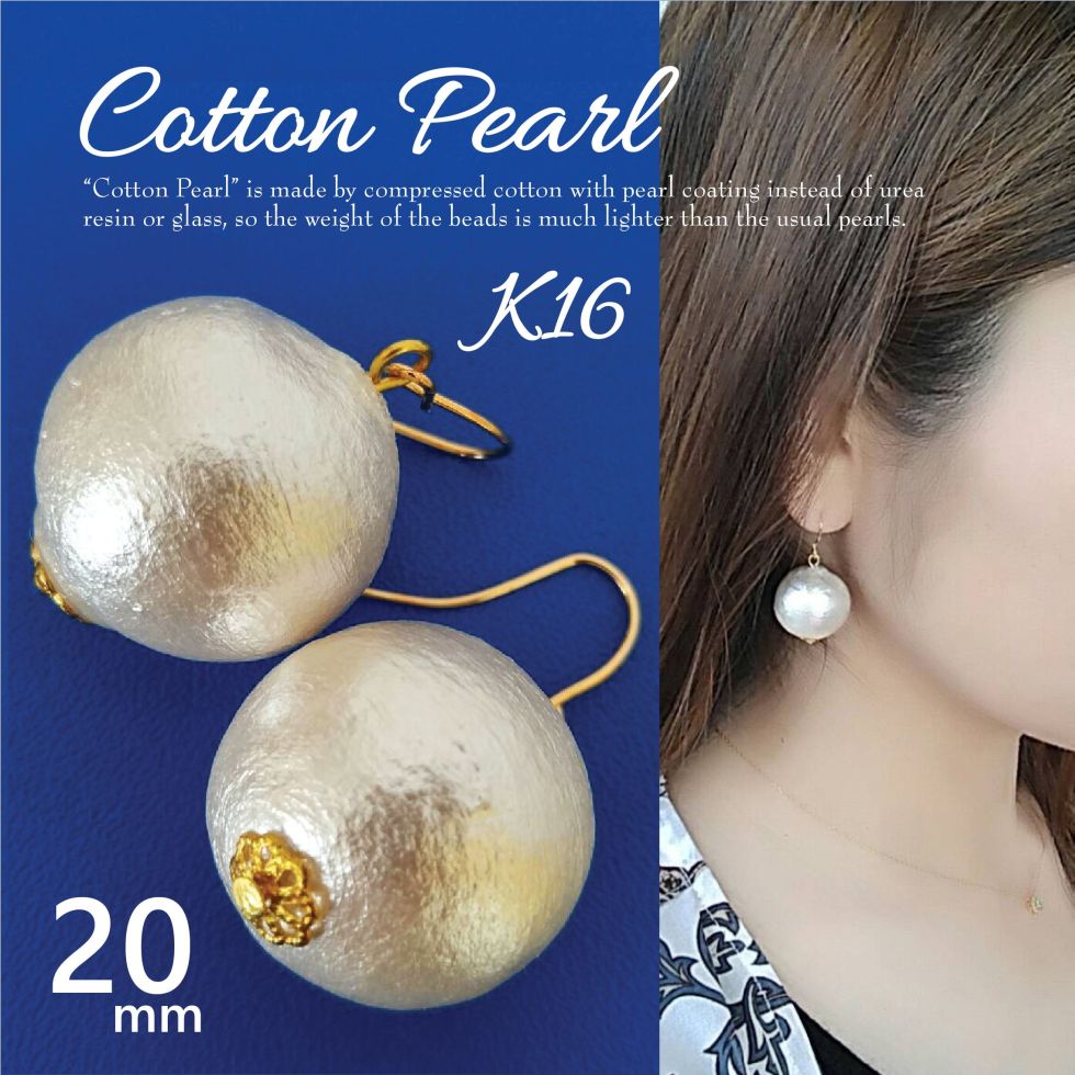 【大ぶりピアス】大粒コットンパール 直径20mm キスカ フックタイプ