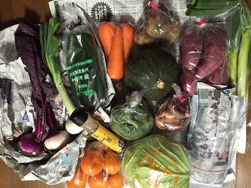 ふるさと割り30% + ヒーローMAX200円クーポン利用してポチってた野菜セットが到着。この時期 大根、白菜はいろいろからいただくのでセットにはいってなくてたすかったぁ^^キャベツ ブロッコリー きゅうり さつまいも じゃがいも等プチトマトほしかったなぁ><、でも野菜全て傷みもなく梱包も丁寧でした。【冷蔵】宮崎情熱野菜セット(くだもの・加工品入 約8kg)★ふるさと割対象商品★価格:3,800円(税込、送料別)