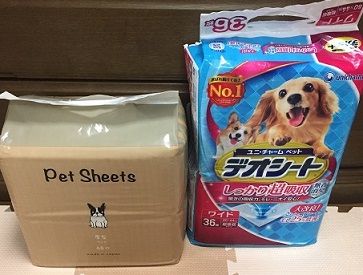 ペットシーツ いろいろまよったけどよく近所で買ってた デオシート にしてみた。おしっこ1回か2回でシート捨てるんで消費ハンパない^^;ペッツビレさんの厚型シート 4,890円と いつのまにか大幅値上がりしてるし???さほど厚みもたいしたことないのに・・・ってことで 昔から使ってたデオシートを。↓↓↓と同じ 超吸収 36枚入り ●mazon で 対象商品5,000円以上 1,000円OFF のキャンペーンがあったので 973円 × 6袋 = 5,838円 ⇒ 4,838円送料無料 1袋/806円楽天内だとここが安いのかな。デオシートしっかり超吸収無香消臭タイプワイド 36枚〔17042125dt〕価格:1058円(税込、送料別) (2017/4/9時点)次は コレを試してみる予定。今●ah--だと 17倍 646ポイントなんだけど。。。置き場所にちょい困るから次回に試す。【大特価・送料無料】ペットゴー 炭でニオイを吸着する超厚型シーツ ワイド 44枚×4個【まとめ買い】【dg_sale201704】価格:3880円(税込、送料無料) (2017/4/9時点)