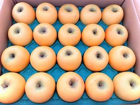 届いています、シナノゴールド。小ぶり 20個入り=5kg 傷等はありませんでした。ただ、ちょっと皮をむいてるとその皮にシワがよったりするものがあったので収穫してから少し時間が経ってるような気がしました。サンフジほど味の濃さはないですが、このさっぱりした酸味と甘みが好みなんですよね。リンゴの食感はしっかりかたかったので早めに食べていこうと思います。1個ずつラップして野菜室に入れました^^