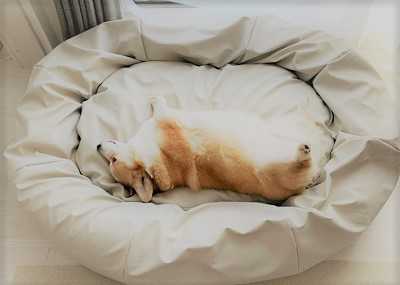 届いています。ヽ(゚∀゚)ノペットベッド合皮カバーの独特なニオイがするということで梱包方法において対策がされていました。開梱しても気になるようなニオイは一切なかったです。合皮レザーは 商品ページにあるとおりのざらっとした質感。爪でひっかいても傷がつきにくい、目立たない感じです。合皮レザーなので シーズン問わず、夏でも冬でも使えそうです。ぽっちゃり12kg後半のコギでこのくらいの広さ。ペットベッドの土手部分(ビーズ部分)のボリューム感。わりとしっかり硬めで、人が枕のように頭を乗せても沈み込まない。わんこが一度ひっくり返るとクッション部が柔らかいからかな?なかなか起き上がれないwww真ん中のクッション部分(綿)は、ほどよいボリューム感でふわっと柔らかいです。柔らかいけど薄っぺらくないです。夜 自ら。。。わしゃわしゃ動き回ってこの位置で就寝wペットベッドLLサイズ 犬 暖かい ビーズクッション 国産合皮レザー 汚れ 超大型犬 わた 犬 ネコ 安心 ビーズ・わた補充可能 カバー 日本製 プレゼント ギフト価格:24,800円(税込、送料別) (2023/4/3時点)部屋のインテリアに馴染んでるので ホワイトベージュにして正解でした。