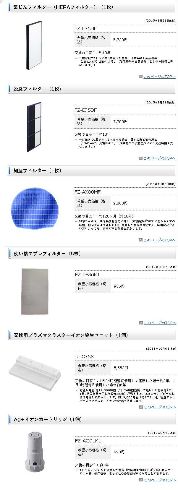 覚書:交換部品 加湿空気清浄機、加湿器… 2023.11.13