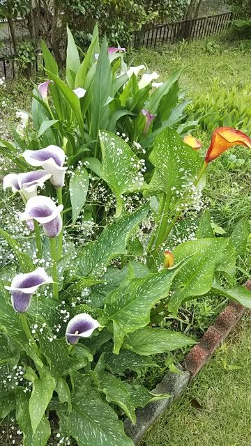もう何年前に植えたか? 忘れましたが、カラーが奇麗に咲いています♪たぶん、毎年増えています(^^)/写真は先日も頑張りましたが、上手くいきませんでした(/_;)スマホとパソコン 説明に書いてある通りに繋げているのですが、インポートが見つからないと 出てきます。難しいので、やはり諦めました。メールで送るとサイズが大きくて。以前はサイズの変更も出来たのですが、出来なくなってしまいました。これは去年の写真です。残念ながら、カスミソウは無くなってしまいましたが、ブルーのお花は増えています(^^♪同じく、ユリはまだ蕾です。