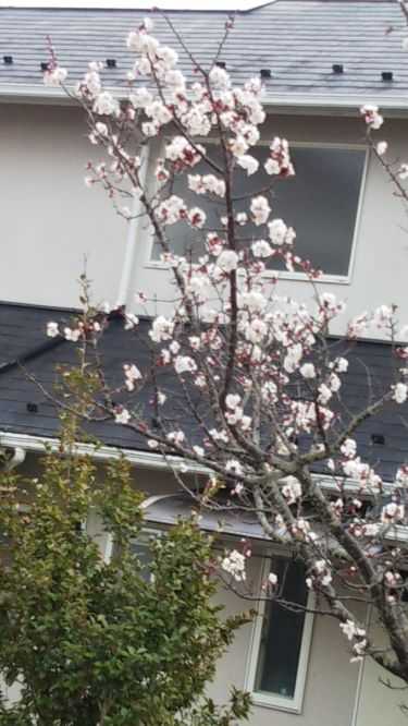 今朝 杏の花が咲いているのに気が付きました♪花粉症の症状はとっくに出ていますけど、春ですね♪