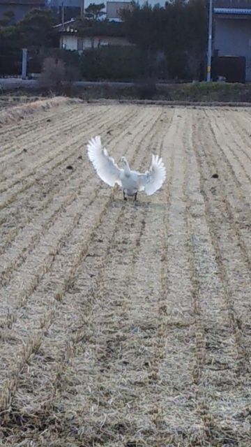 先日撮った、近所の田んぼに居た白鳥です。ちょうど降りて来た所で、羽を広げている写真はめずらしいですね♪