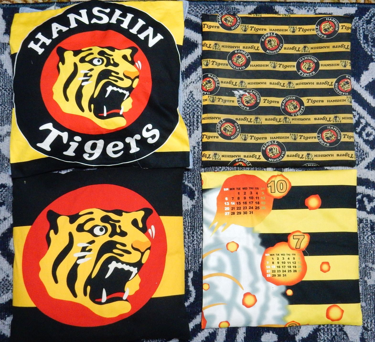 婆っちゃんが先日の座布団カバーに引き続き、タイガース布を使ってのクッションカバーとザブトンカバーを試作しました。