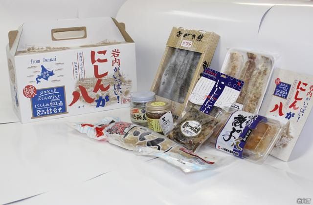 九九のニシガハチの駄洒落で付けた商品名の様ですが、岩内町名産のにしん製品8種類が詰めてあり、大変嬉しいです。